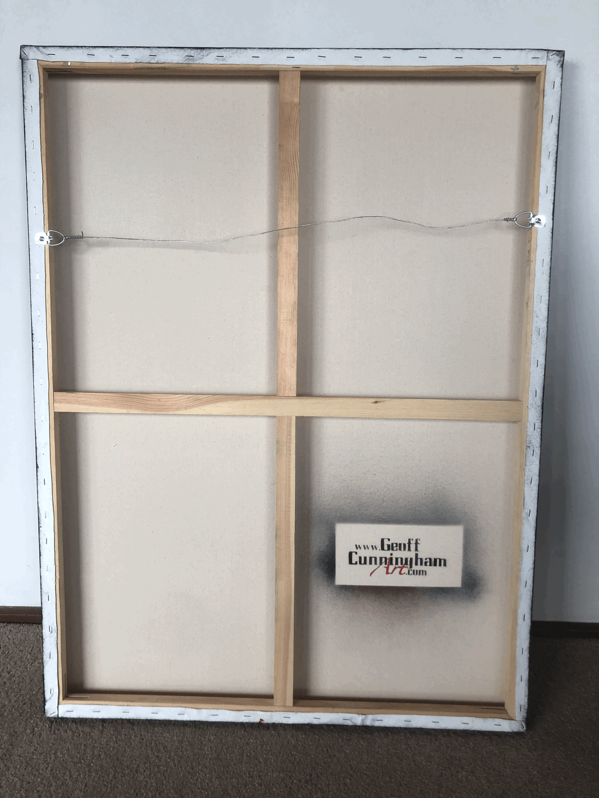 Aerosol and acrylic on artist quality stretched canvas - 76 x 102cm. Add a floating frame - your choice of black, white or natural oak. Free Shipping Australia wide.
