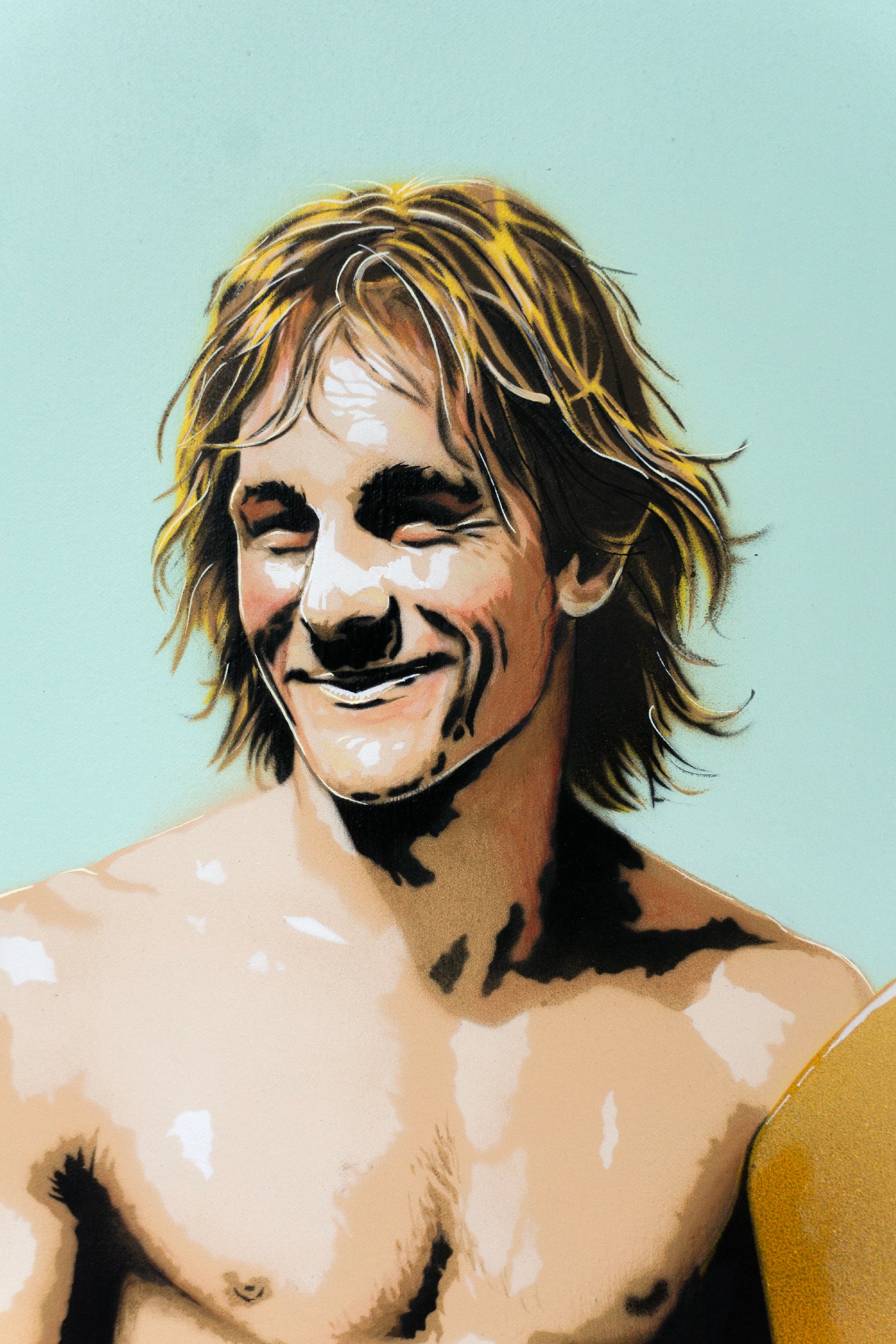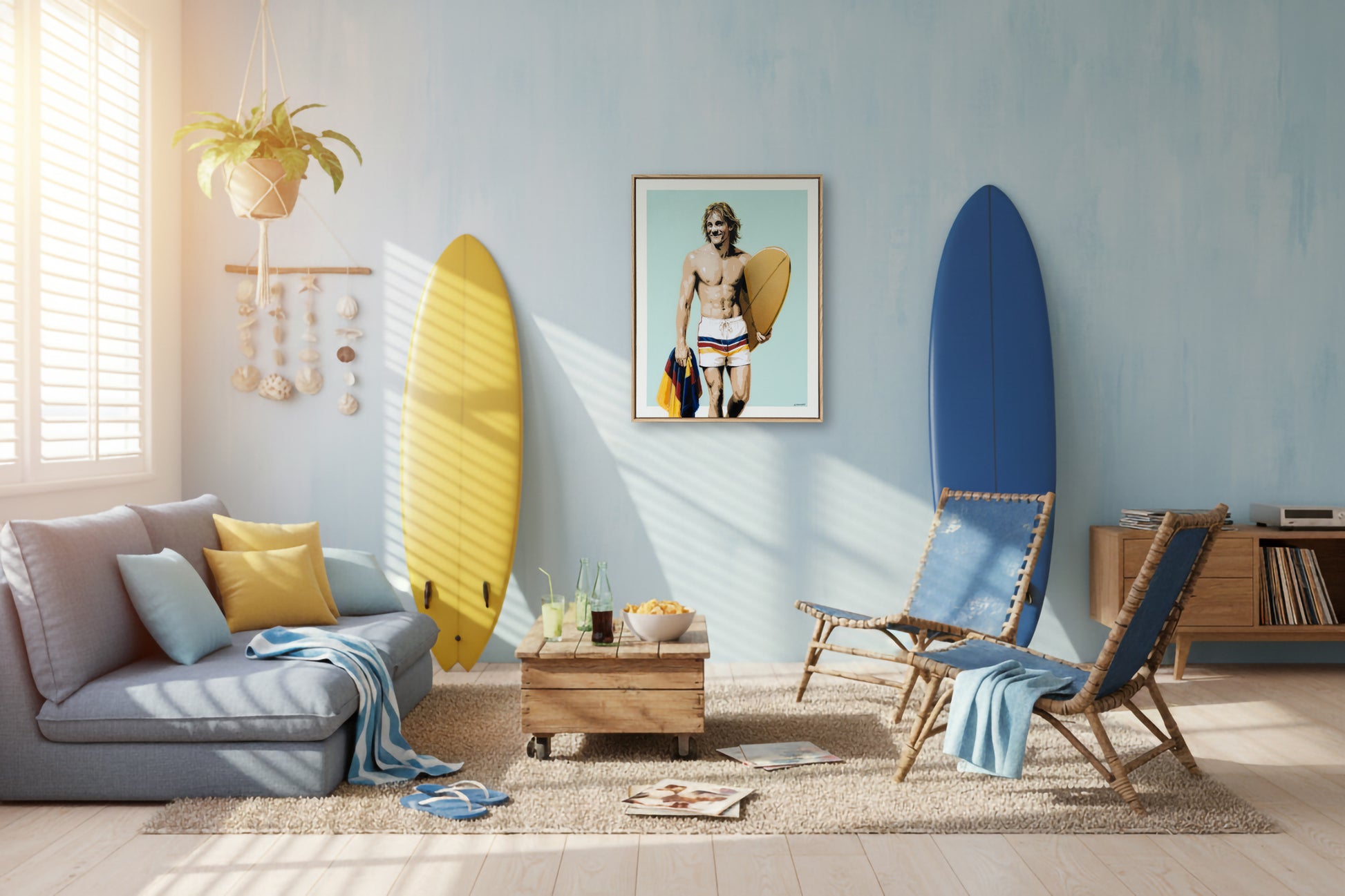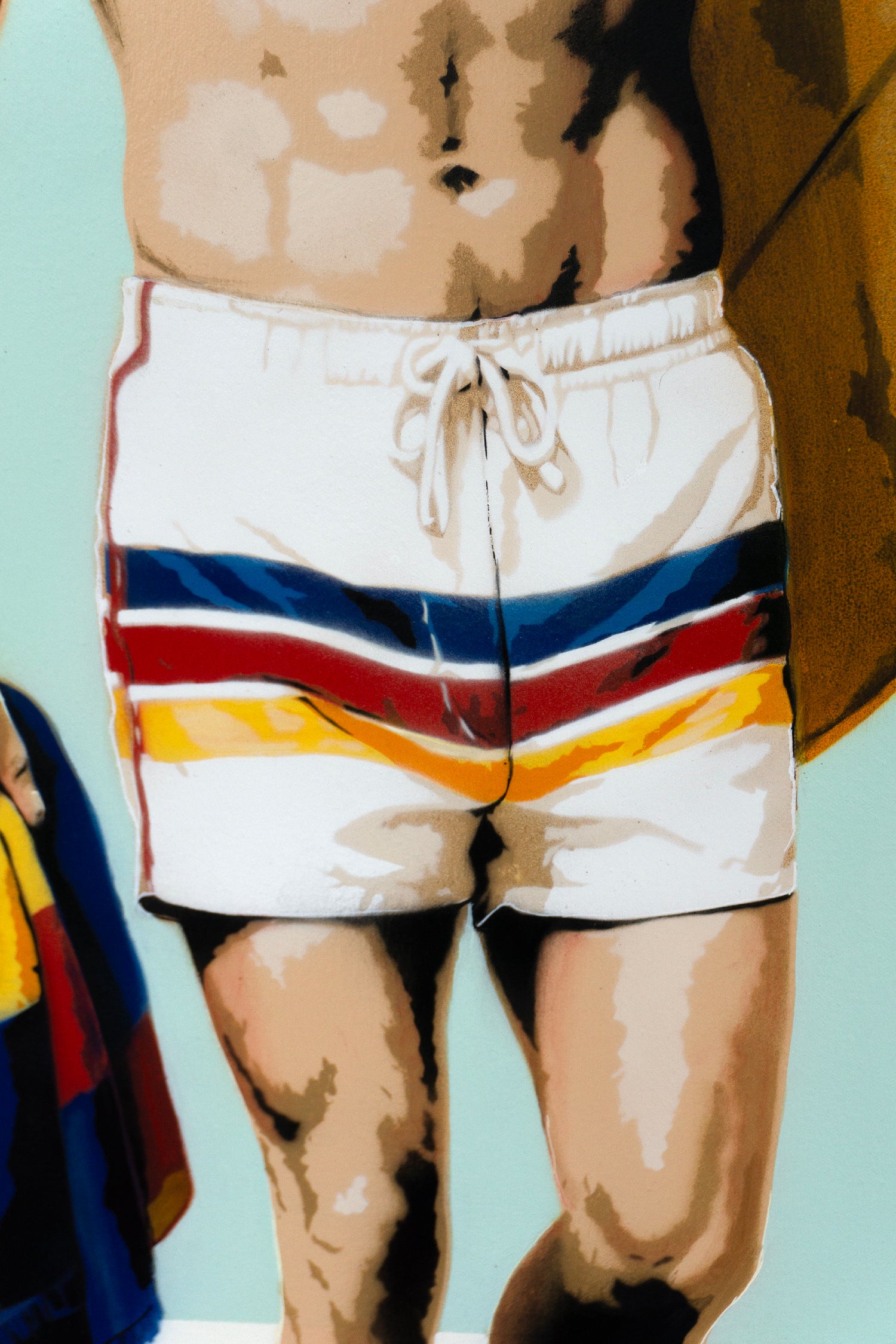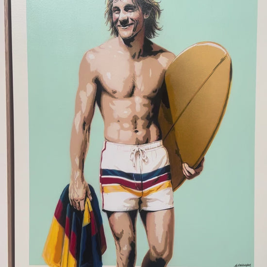 " 'Boys Light Up' captures the golden hour of Australian surf culture — sun-bleached hair, striped boardies, salt on skin and that laconic grin that says "is there anything else you'd rather be doing?" This piece is about freedom — the easy rhythm of summer when everything feels simple and the waves go on forever."
