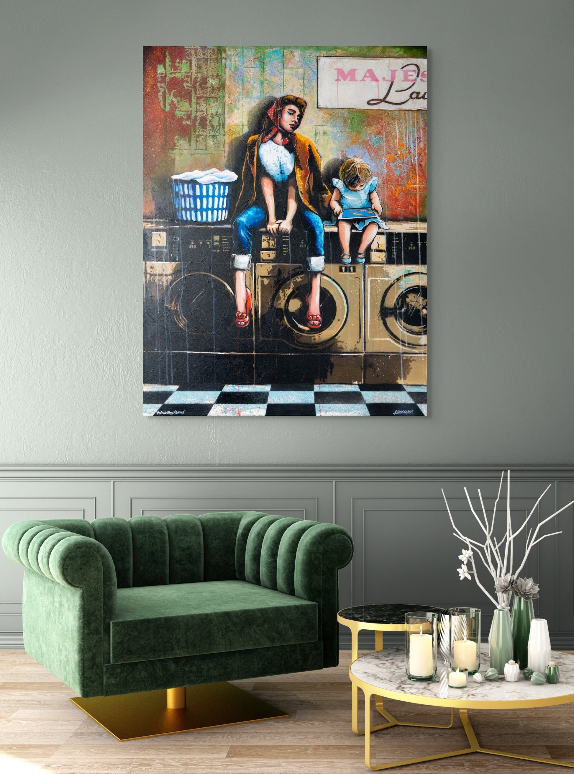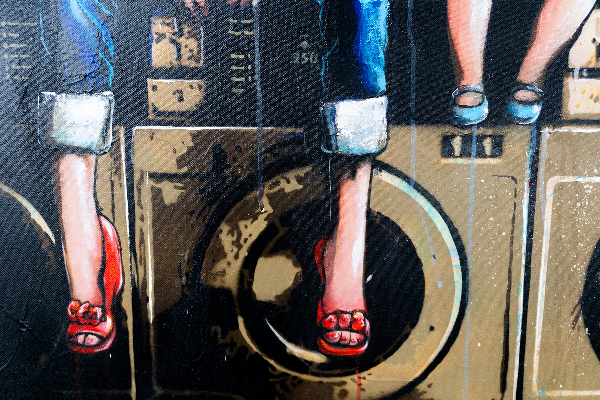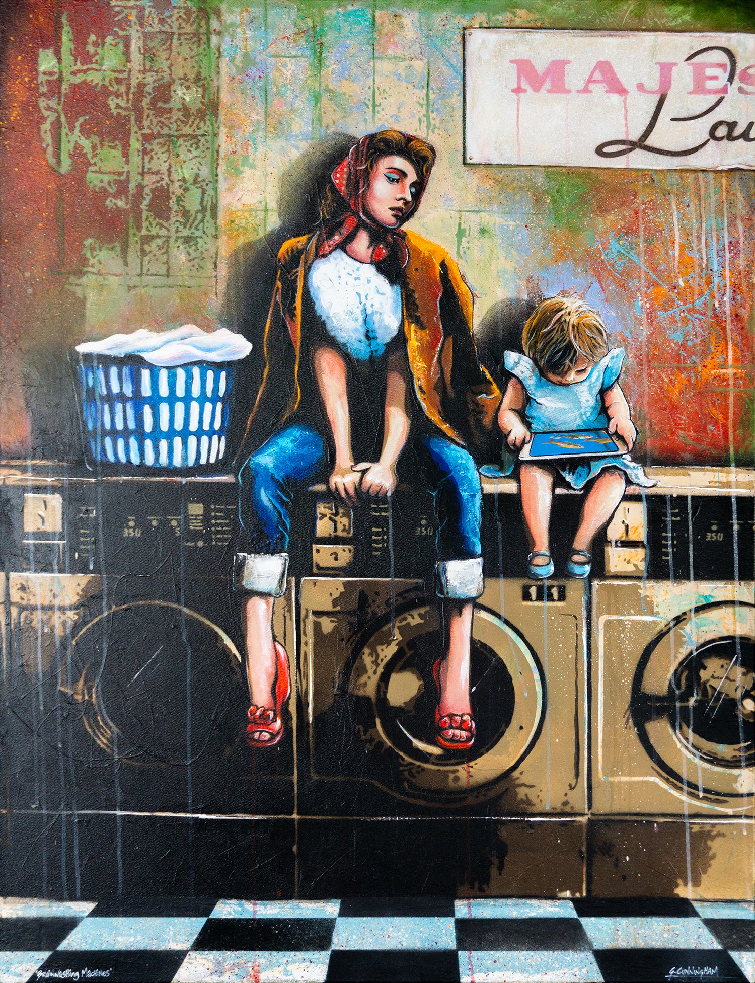 ‘Brainwashing Machines’ is a painting I’ve done several versions of over the years but the message still remains relevant - digital devices dominate our lives (myself included), and it is an addiction that can be hard to break.