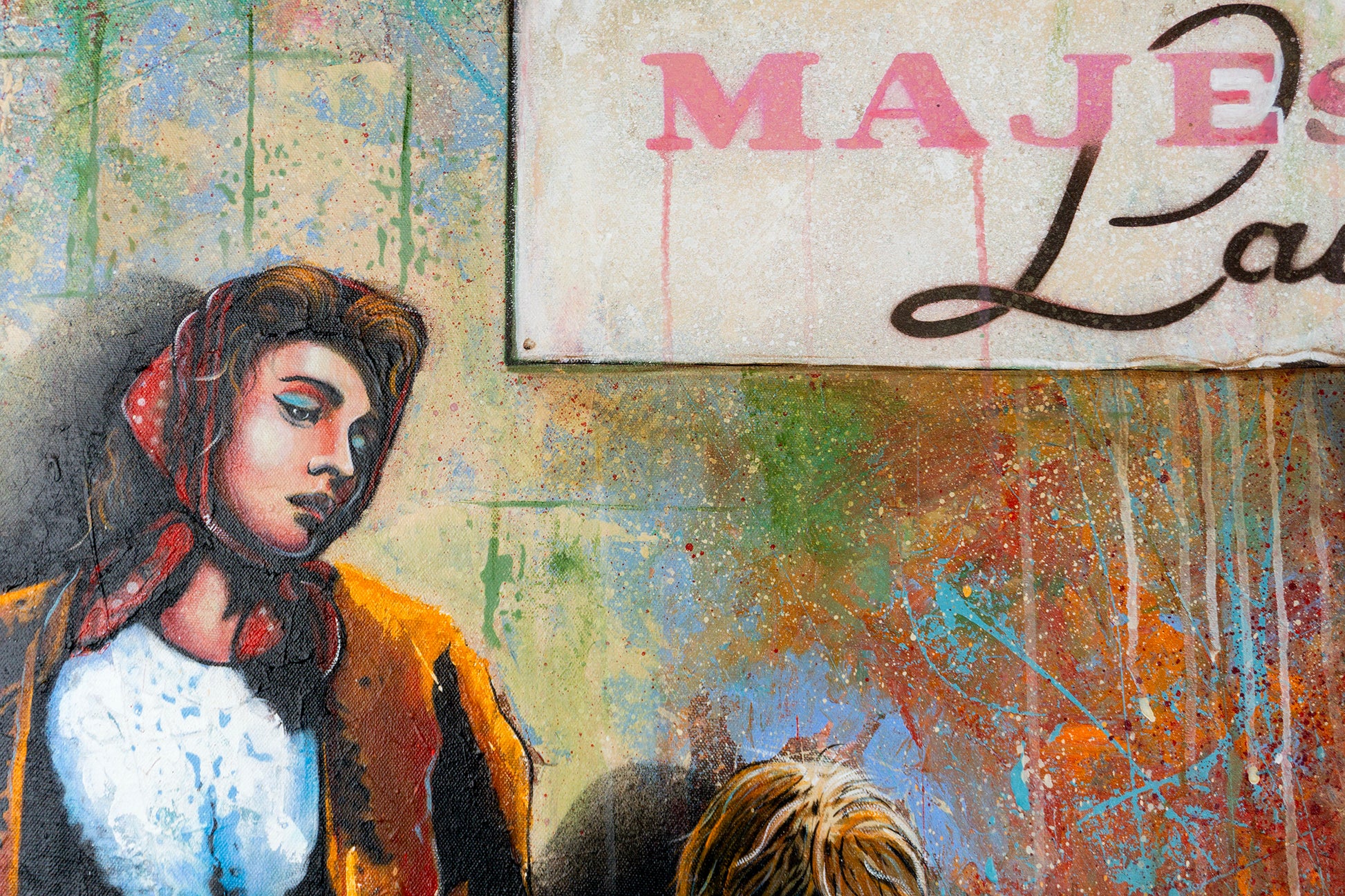 Acrylic & aerosol on canvas 91.5 x 122cm. Add a floating frame - your choice of black, white or natural oak. Free Shipping Australia wide.