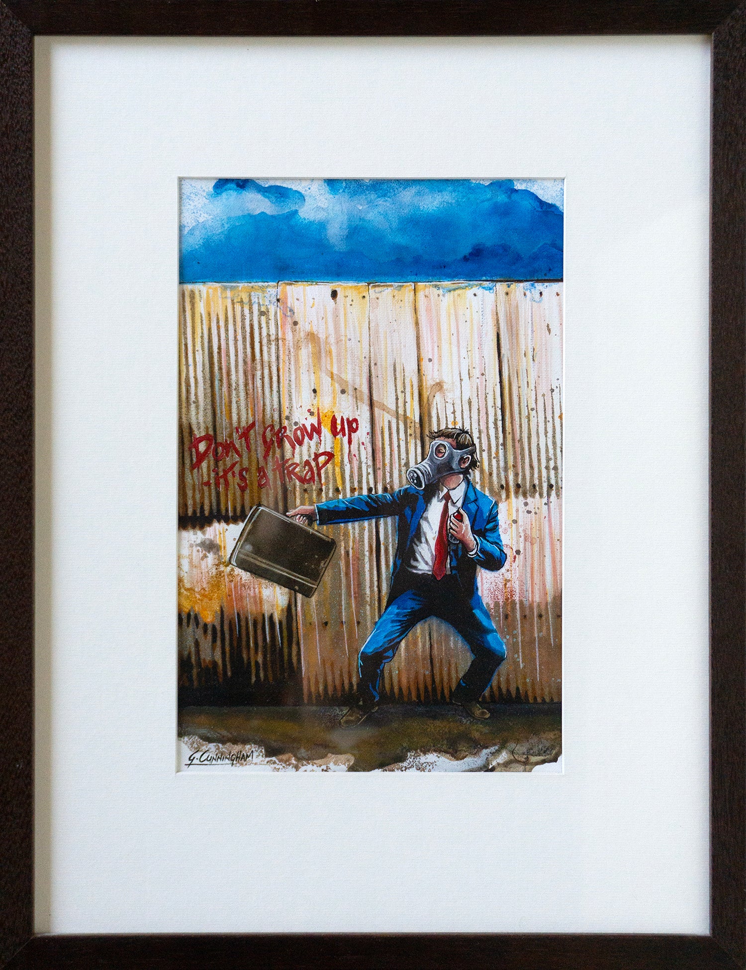 This is a shorter, snappier version of one of my favourite sayings - "Growing old is inevitable, growing up is optional!" This painting marks the return of one of my old anti-hero characters "Graffiti Man", which challenges our tendency to judge people based solely on their appearance.