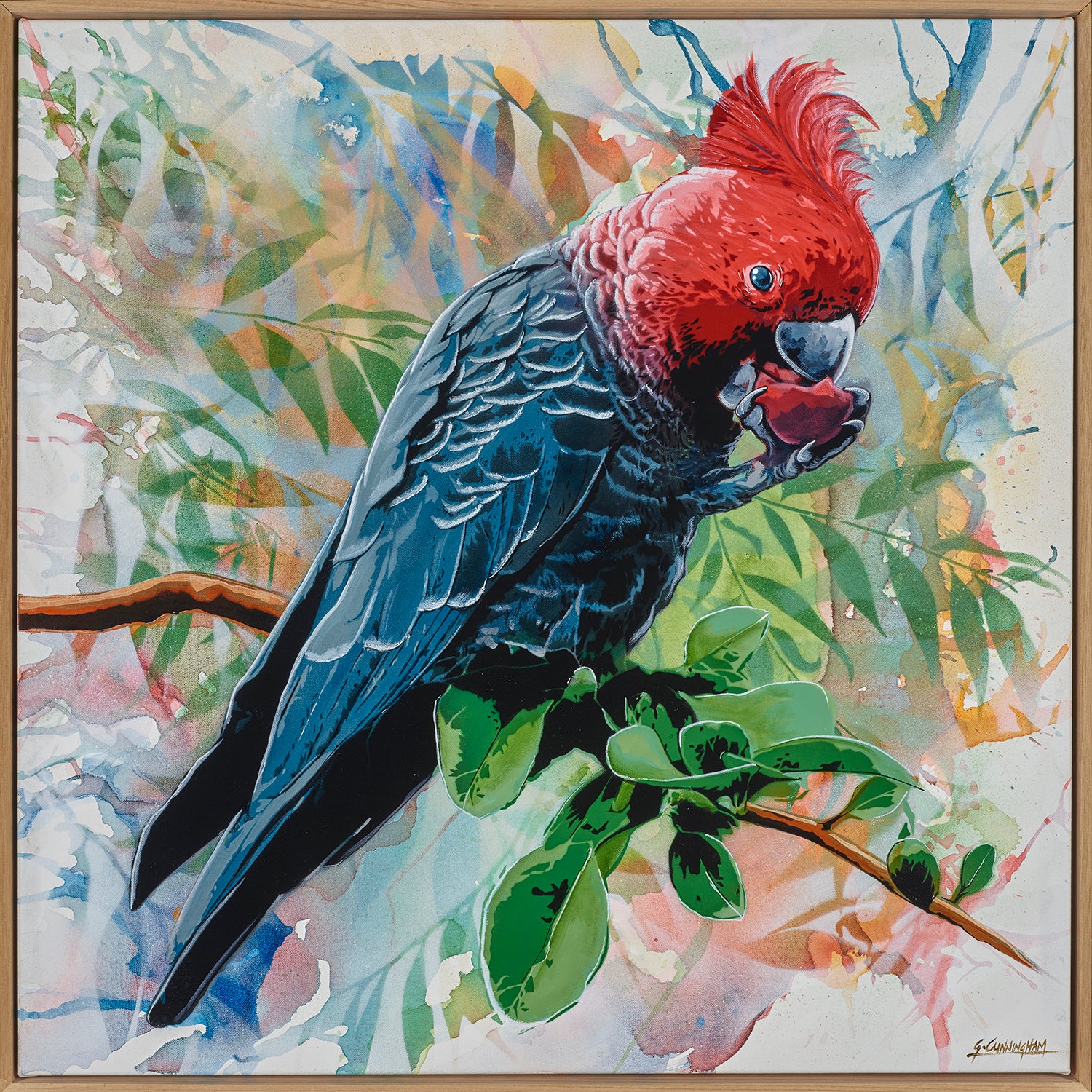The Gang-gang Cockatoo is a beautiful native Australian bird mainly found in south-eastern Australia. The males have a scarlet head and a spiky crest which I feel gives a slightly "punk" vibe and a cheeky personality.