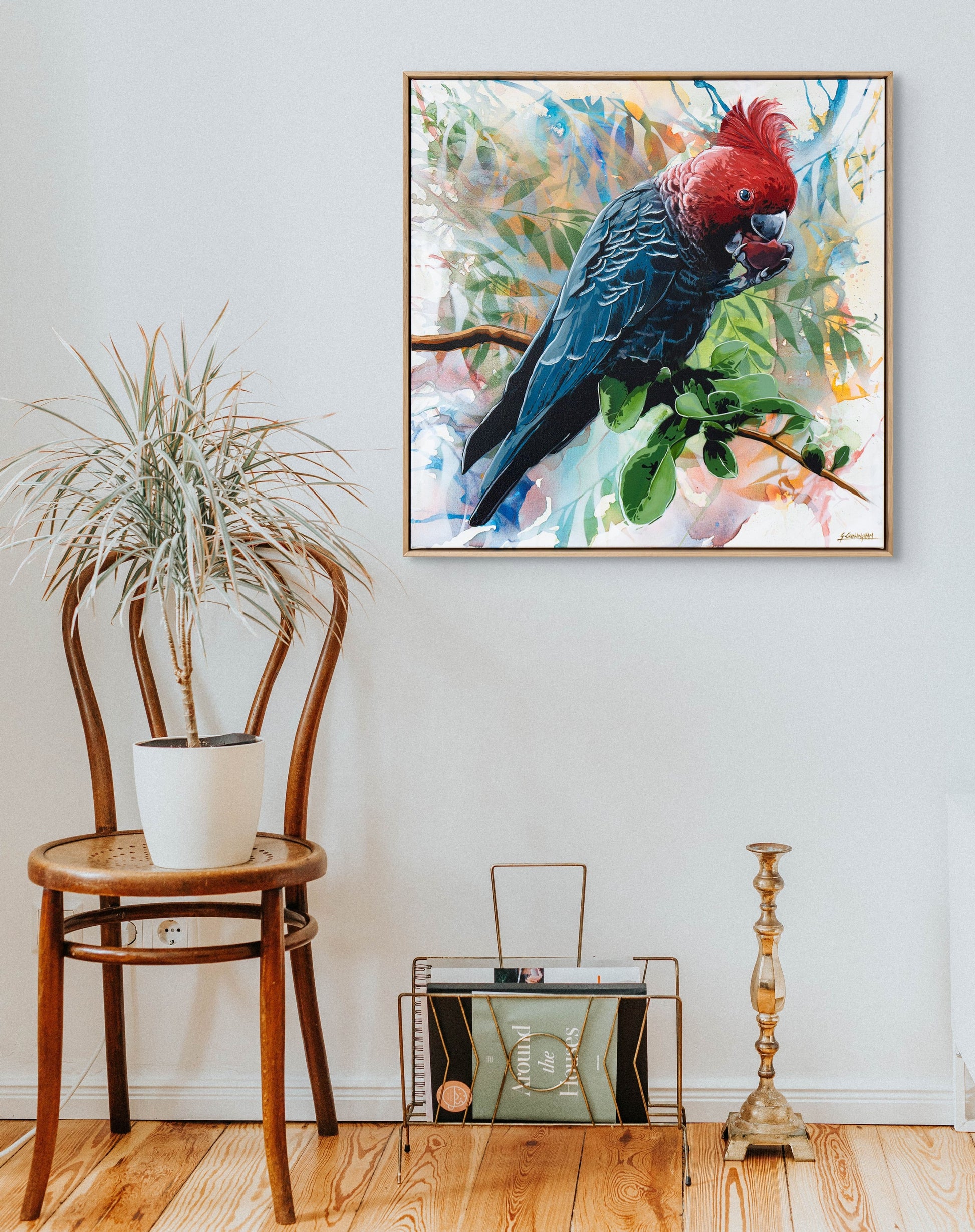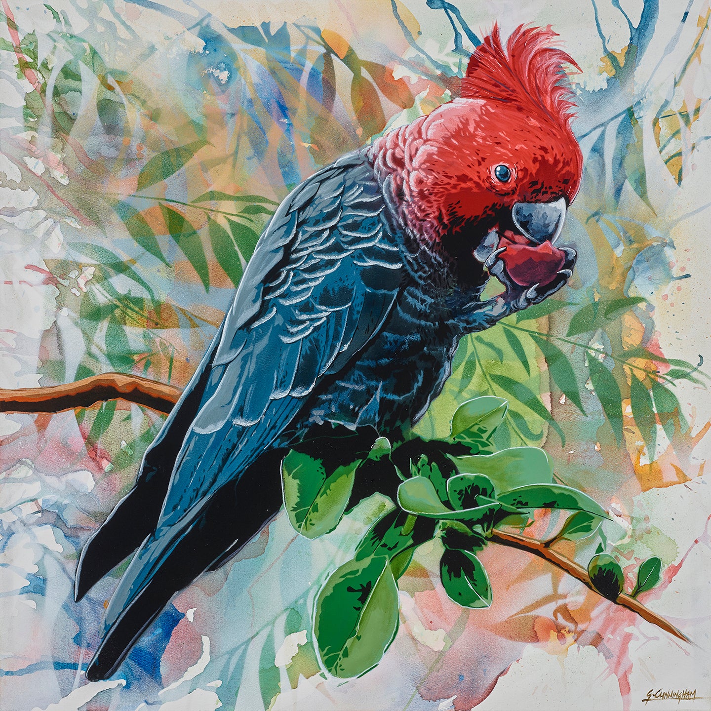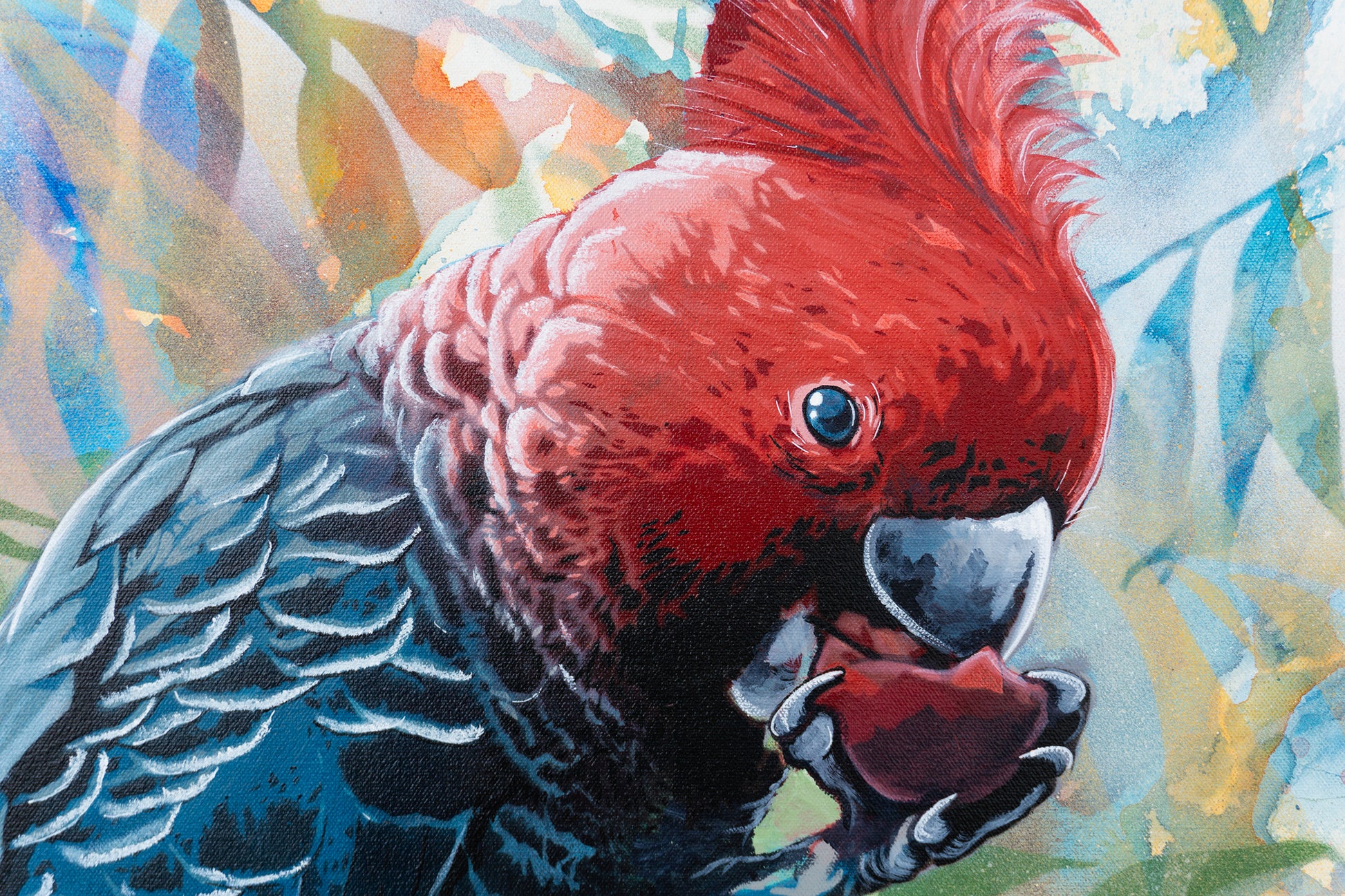 The Gang-gang Cockatoo is a beautiful native Australian bird mainly found in south-eastern Australia. The males have a scarlet head and a spiky crest which I feel gives a slightly "punk" vibe and a cheeky personality.