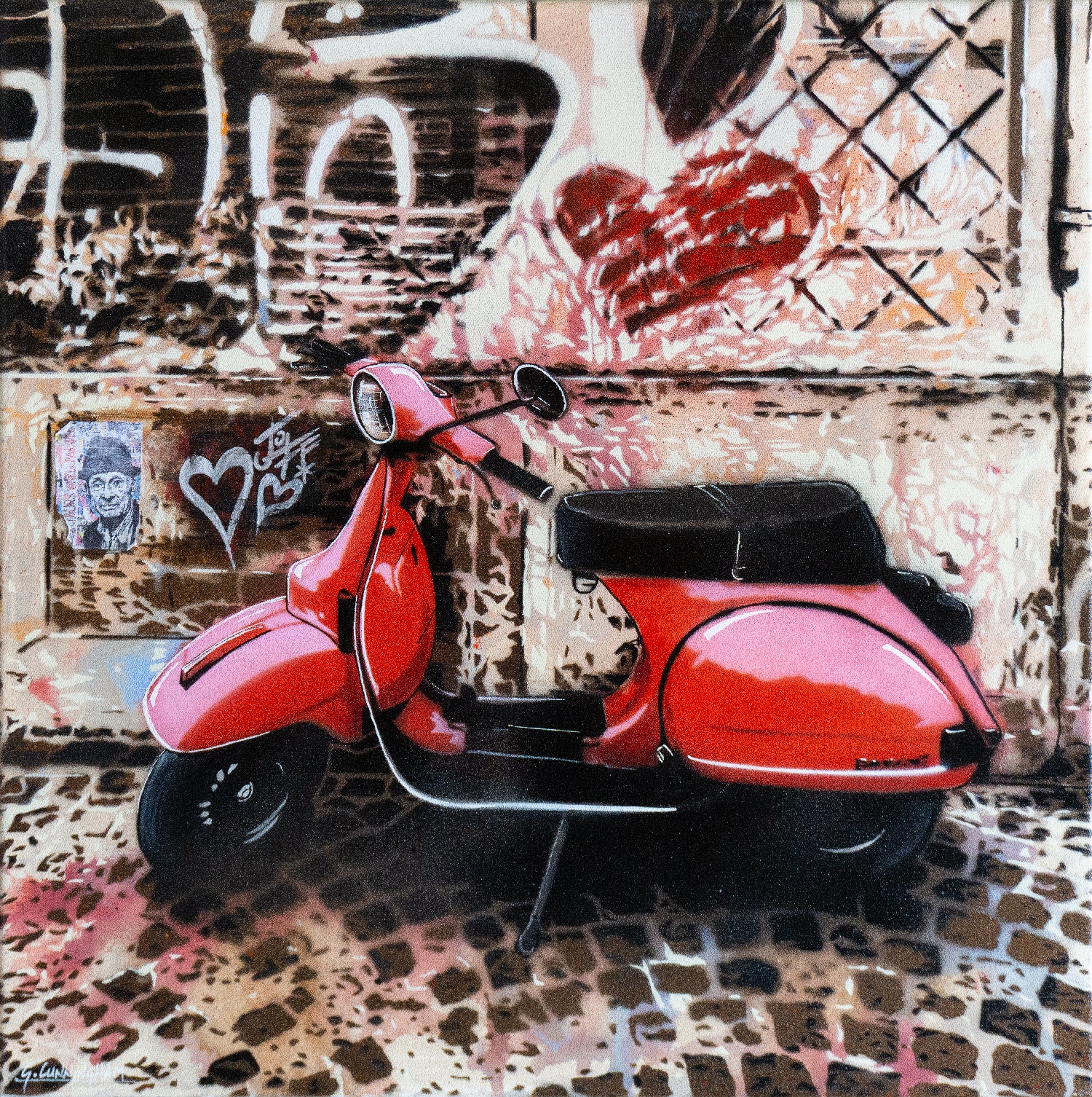 This original painting is based on my own photograph taken in Torino, Italy, and was created using a combination of acrylic underpainting, overlayed with spray paint utilising hand cut stencils.