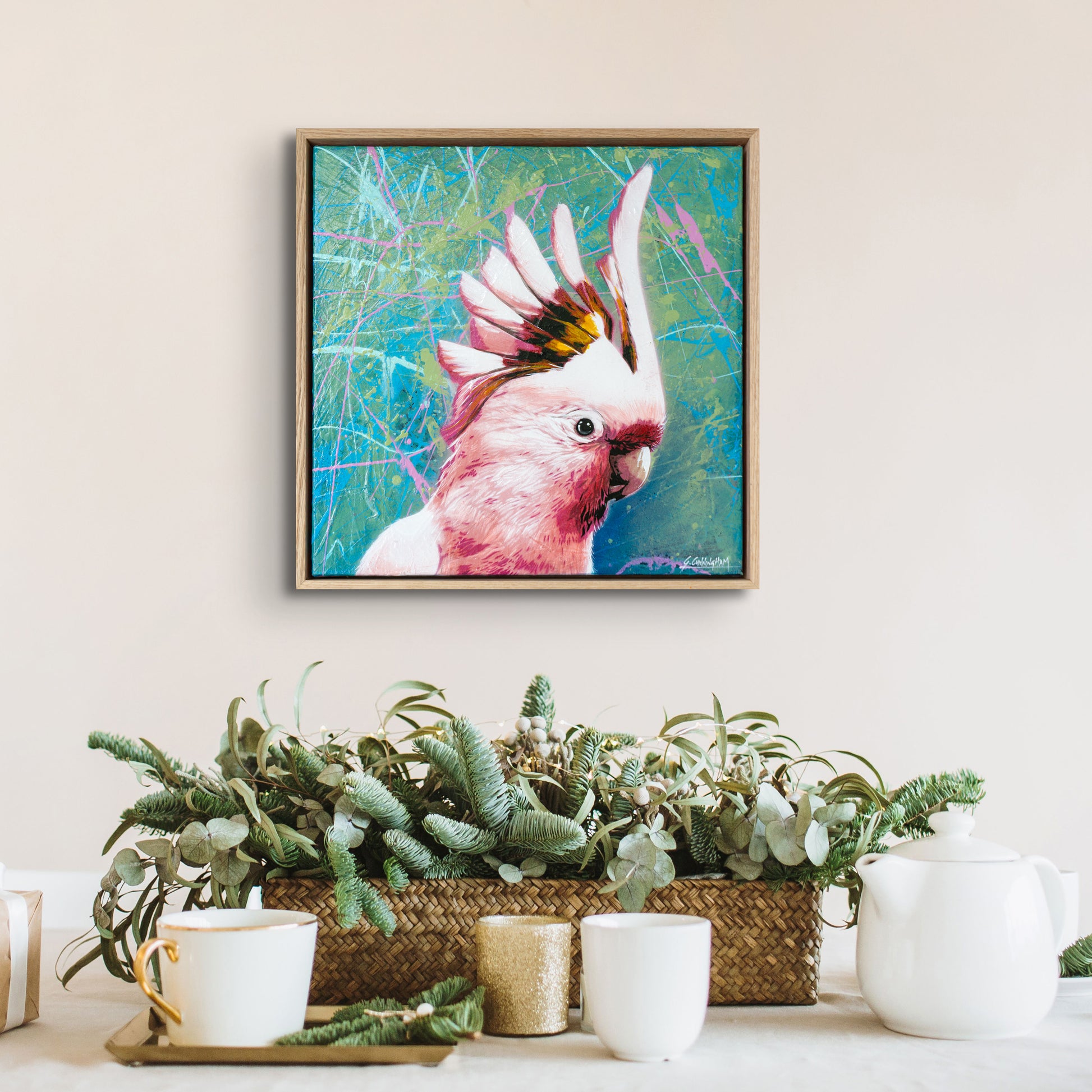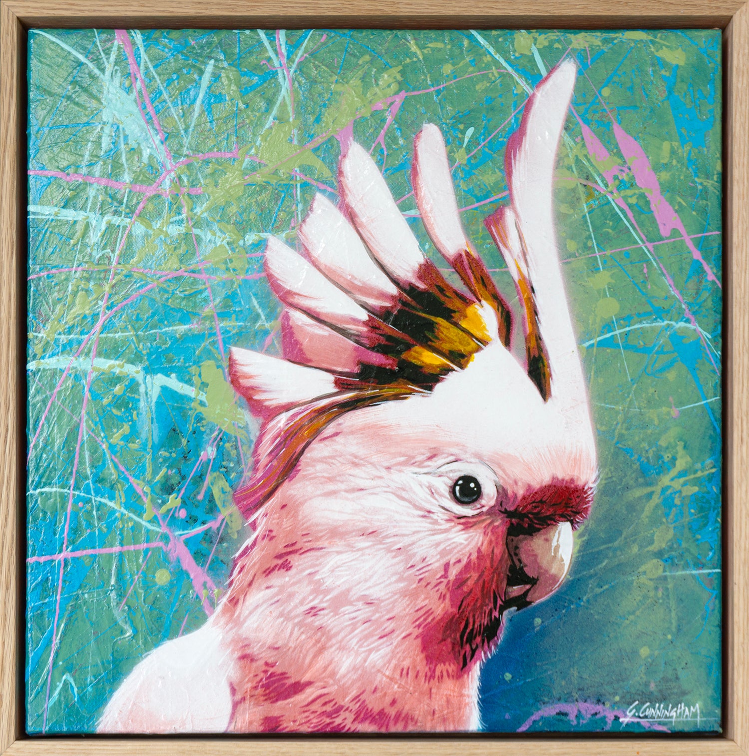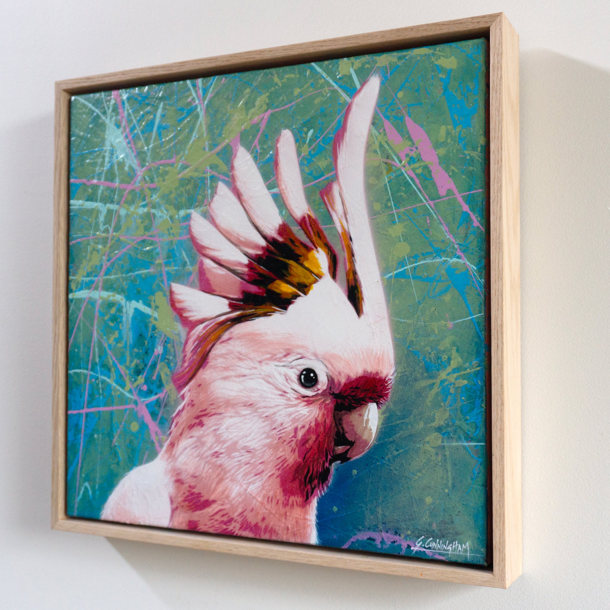 Acrylic & aerosol on artist quality canvas - 40 x 40cm. Already framed in natural oak. Free Shipping Australia wide.