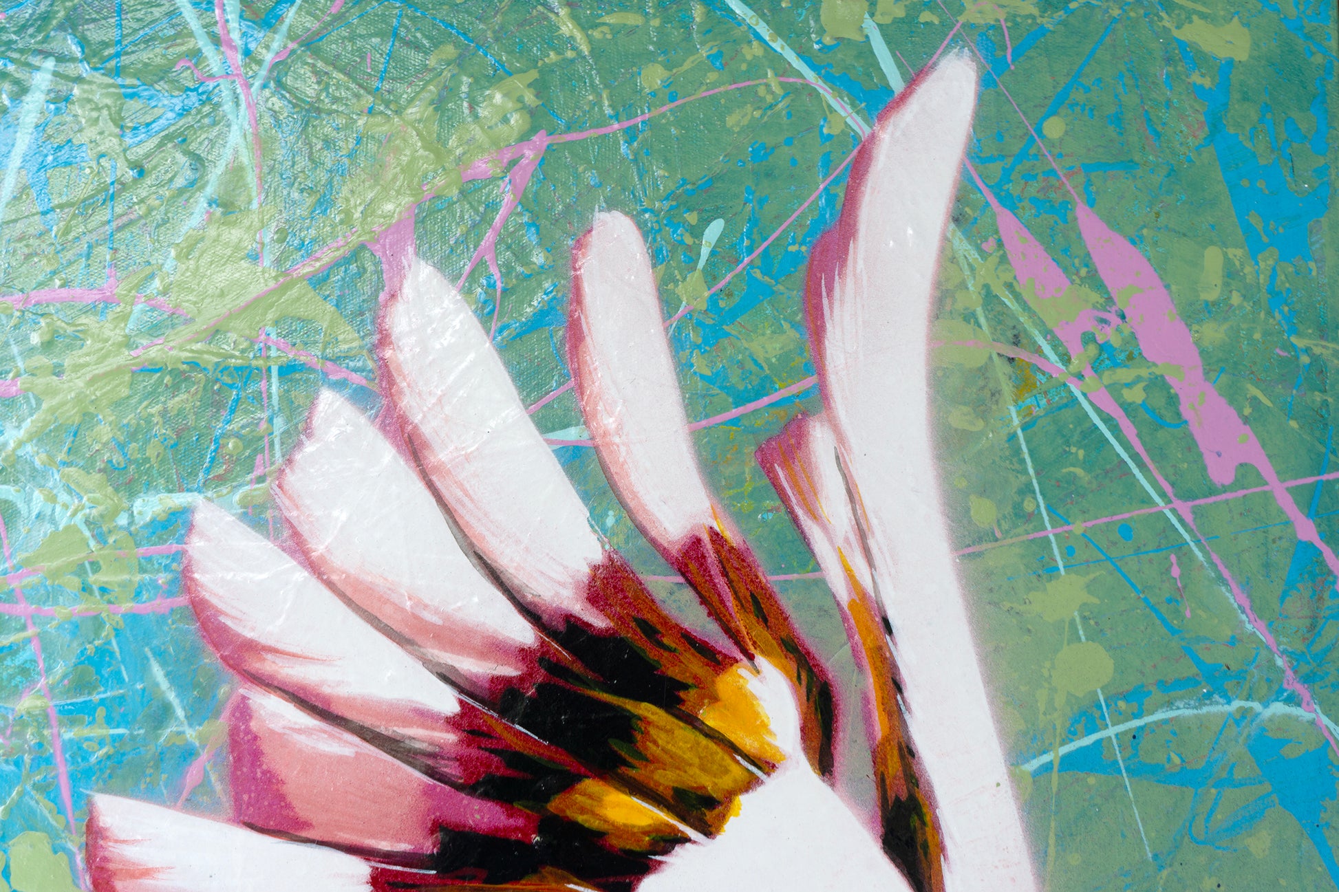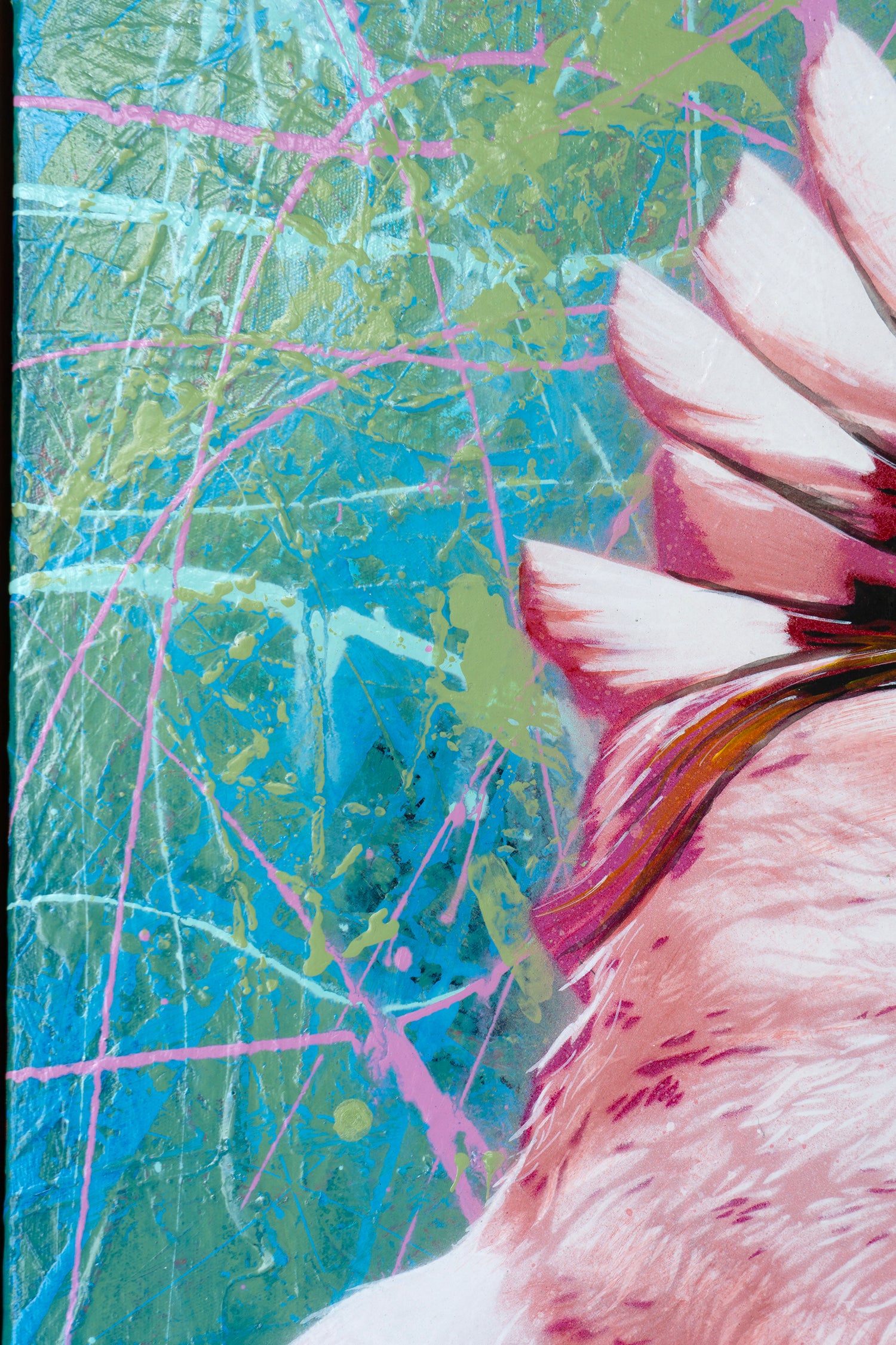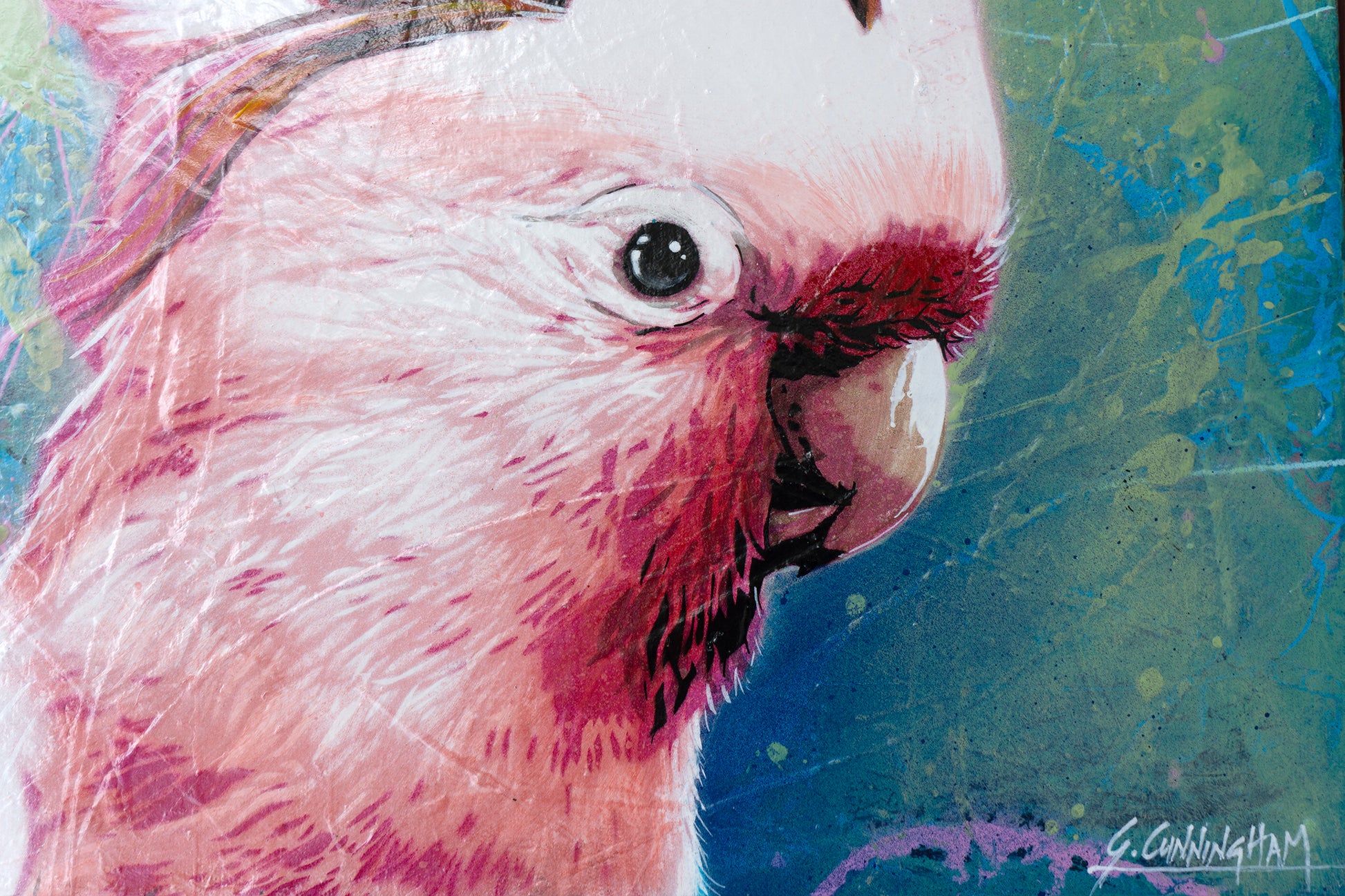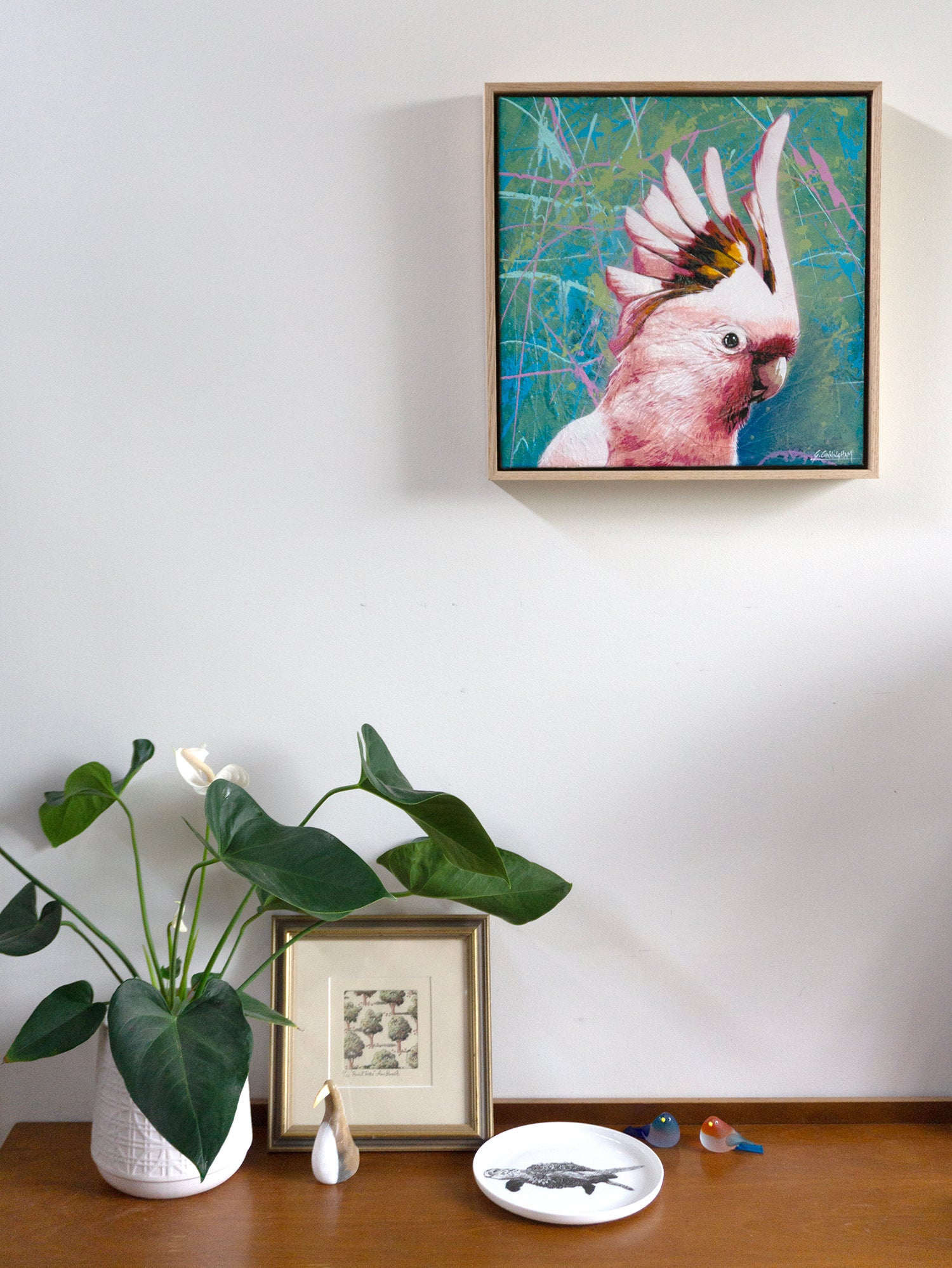 Acrylic & aerosol on artist quality canvas - 40 x 40cm. Already framed in natural oak. Free Shipping Australia wide.