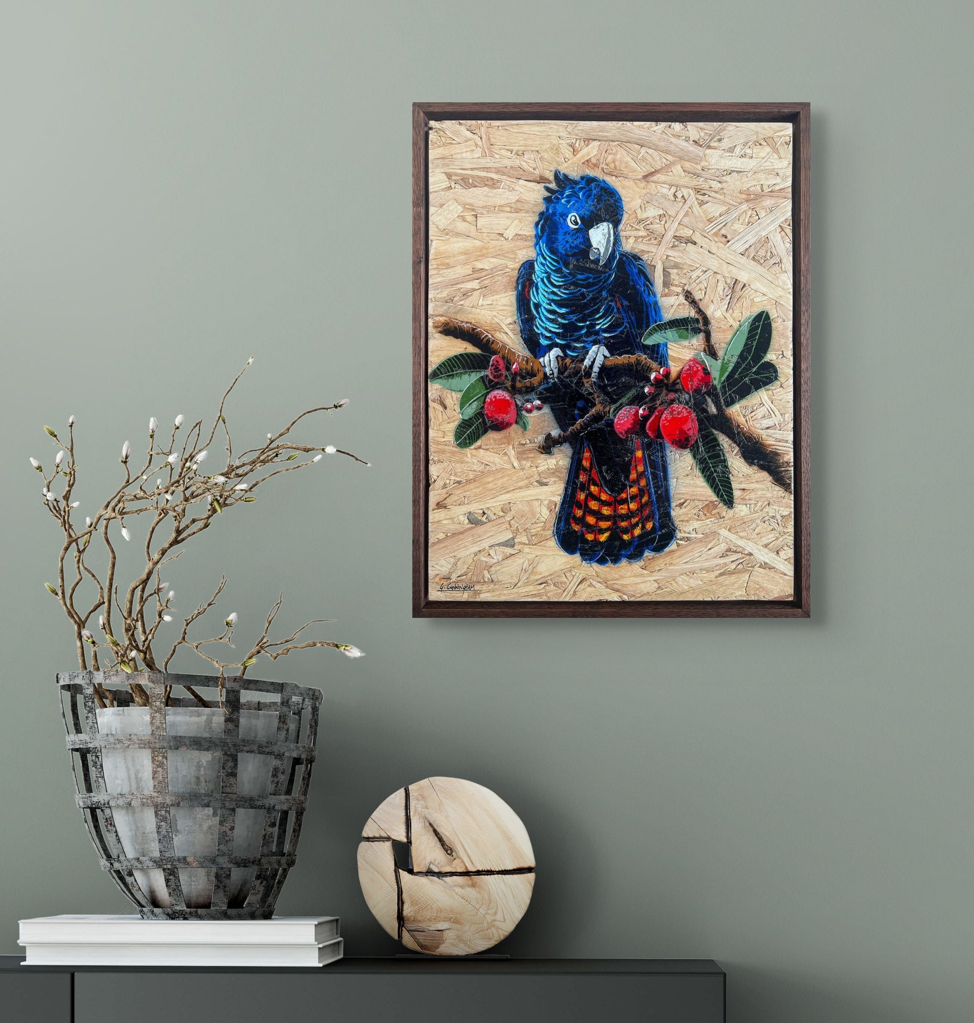 Acrylic & aerosol on brace board - 40 x 52cm. Already framed in walnut stained oak. Free Shipping Australia wide.