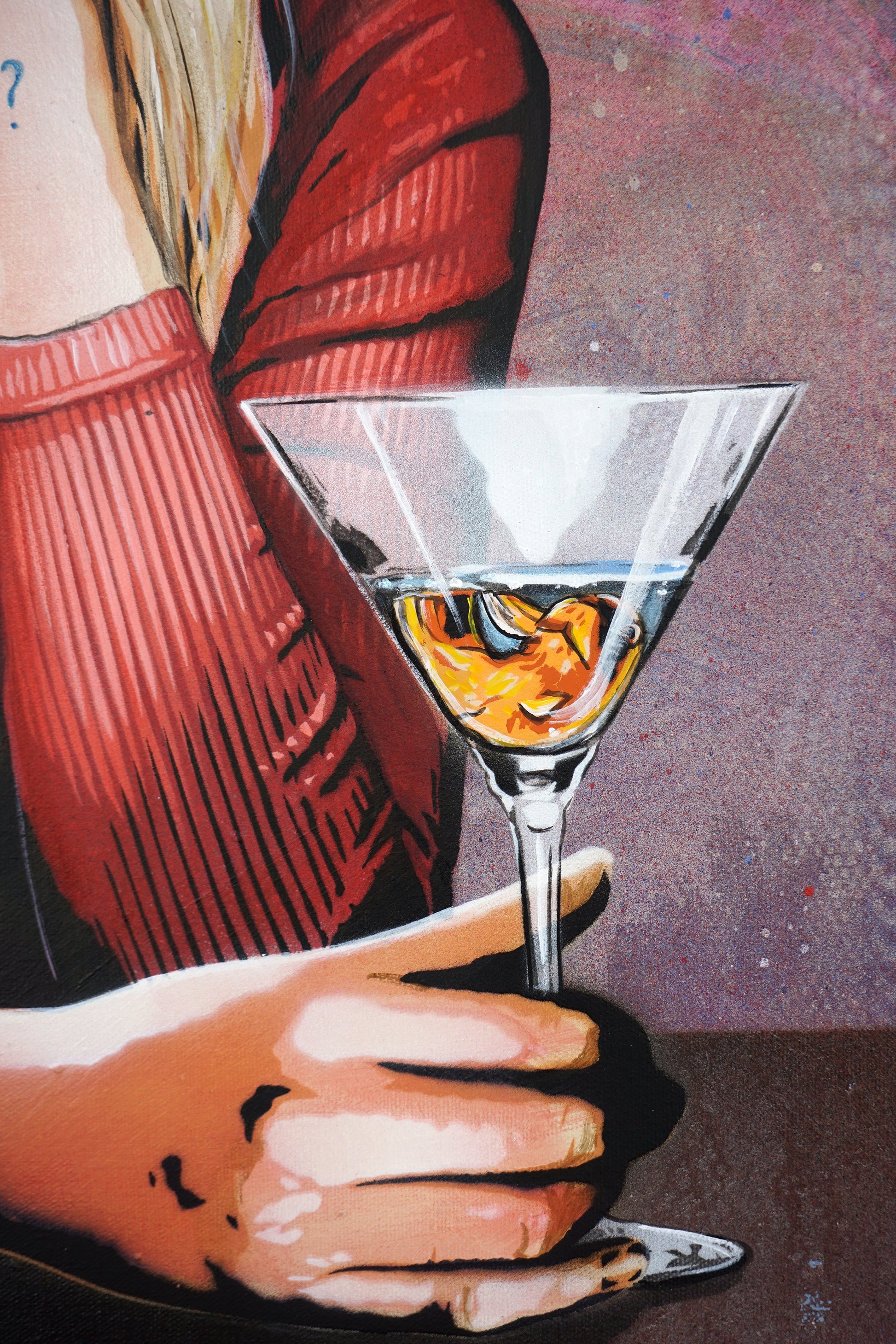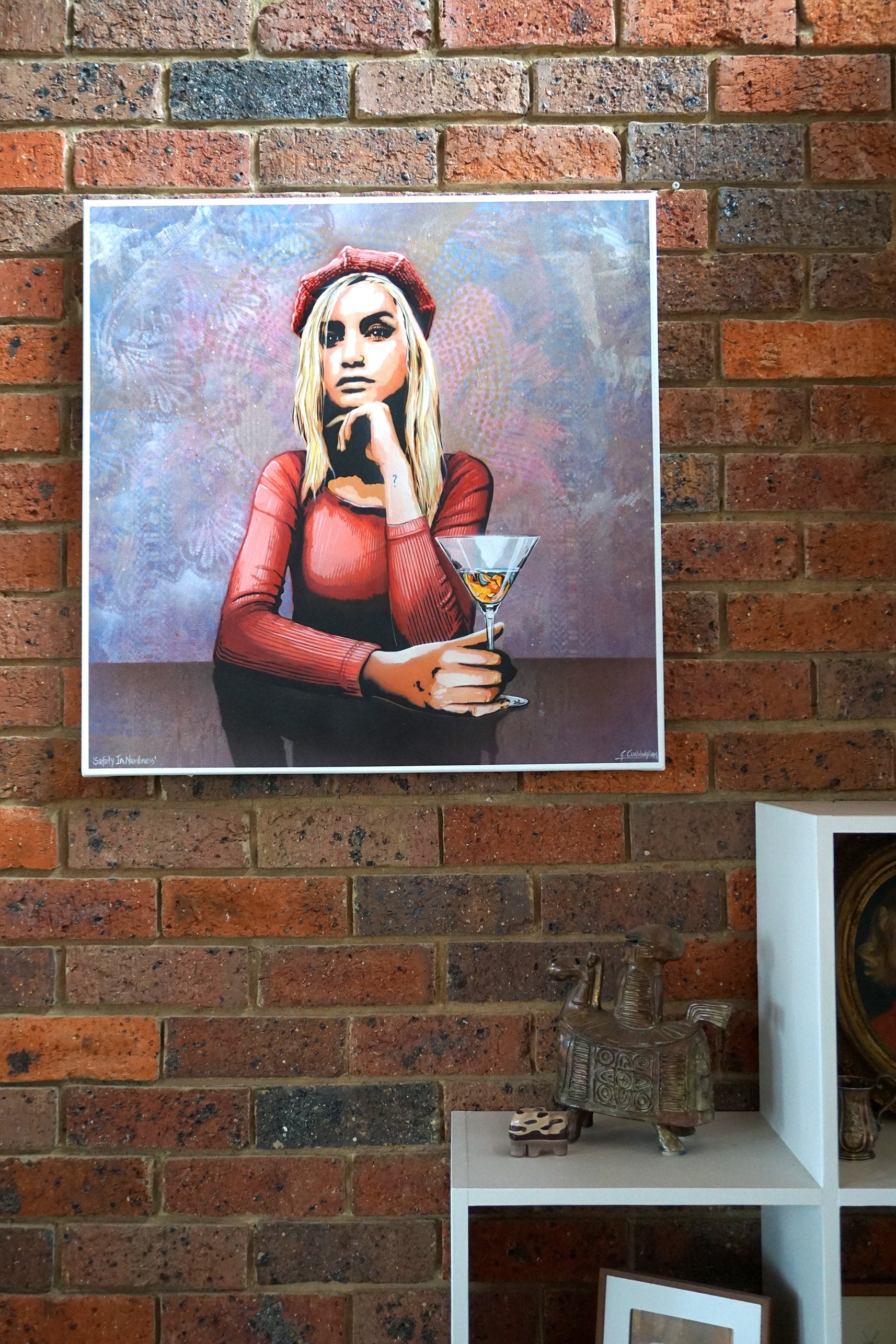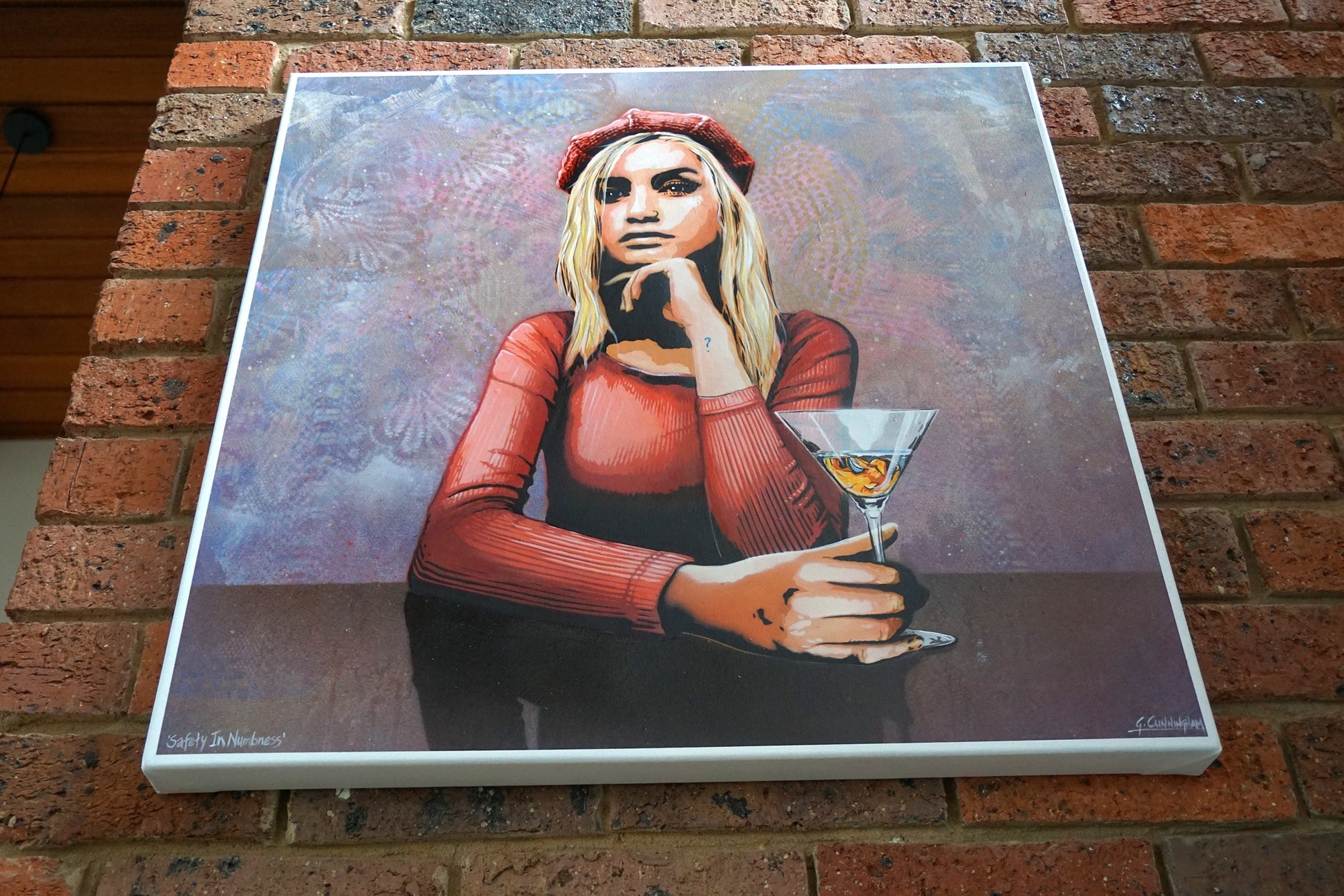A complex, multi-layered background represents the busyness of the world around us, whilst the goldfish represents our collective short attention span; we don't even realise that sometimes we are the ones swimming mindlessly in a fish bowl.