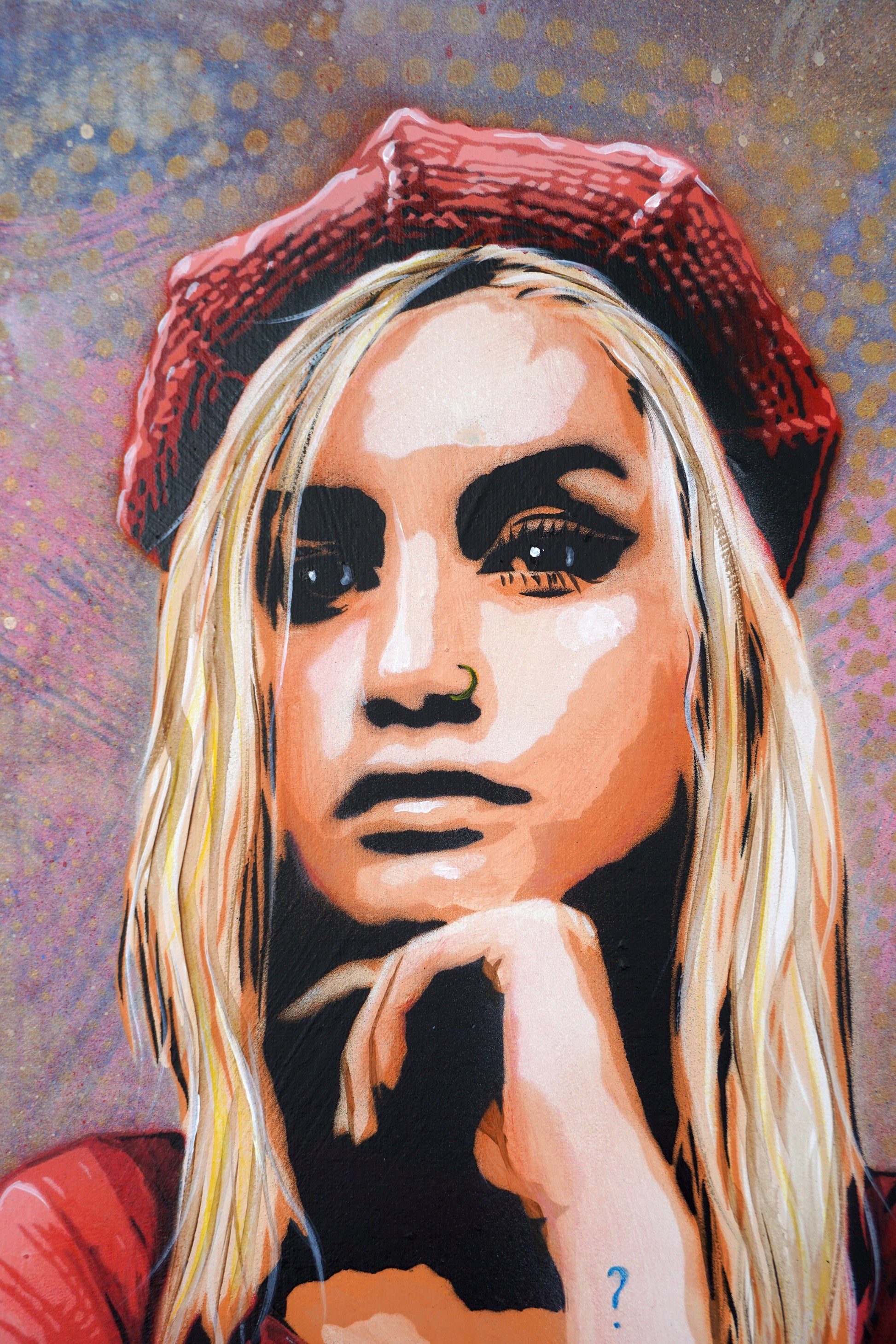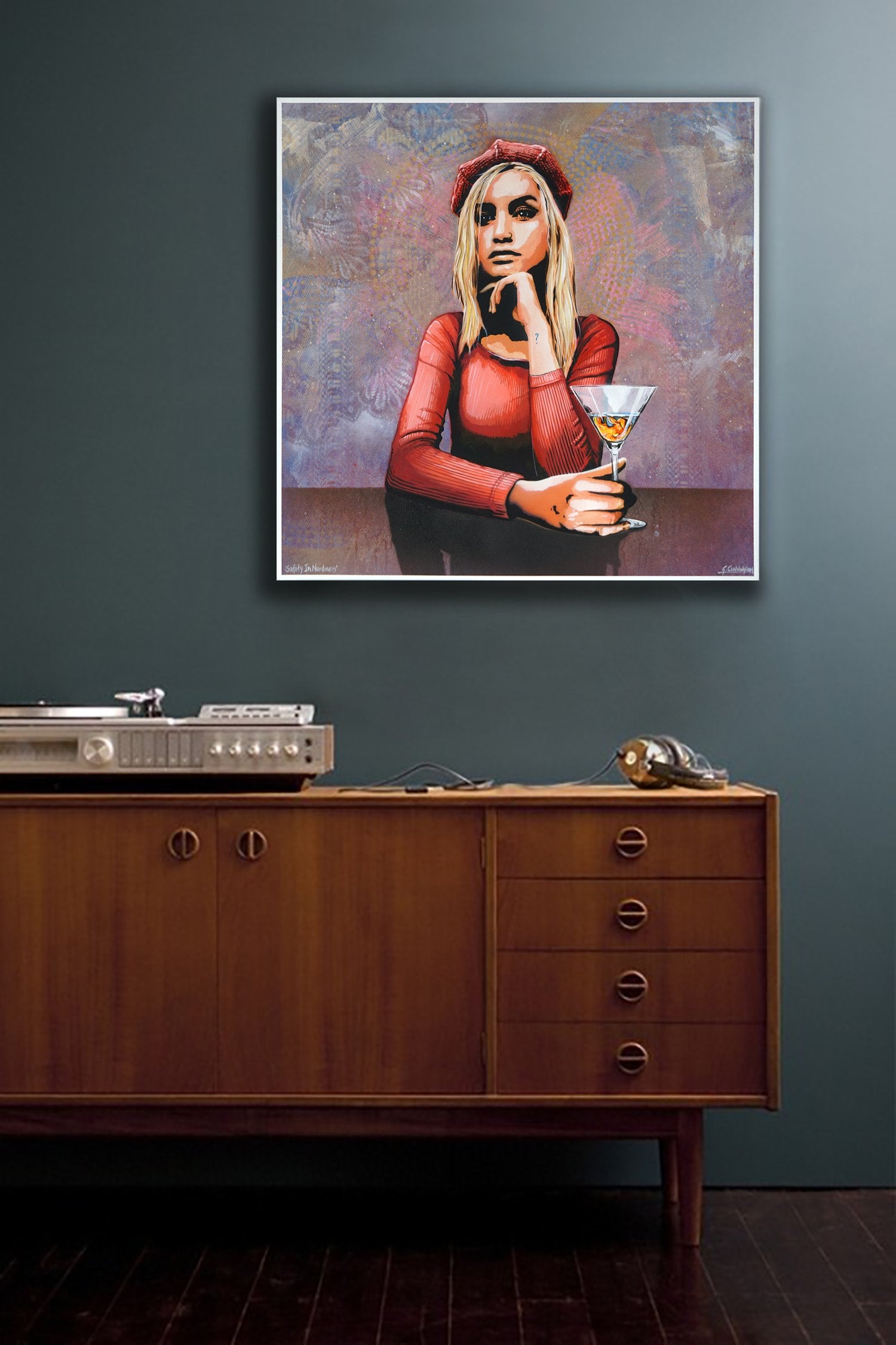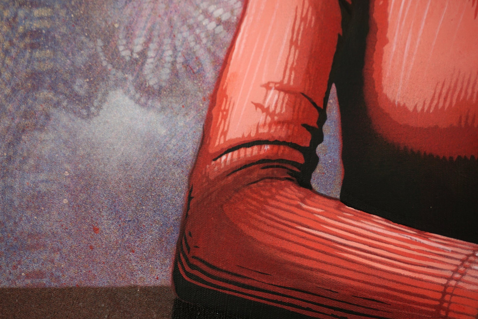 A complex, multi-layered background represents the busyness of the world around us, whilst the goldfish represents our collective short attention span; we don't even realise that sometimes we are the ones swimming mindlessly in a fish bowl.