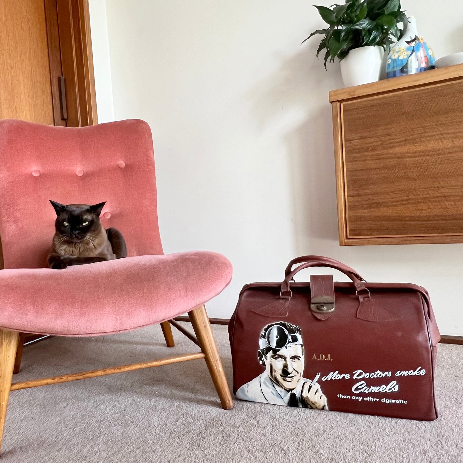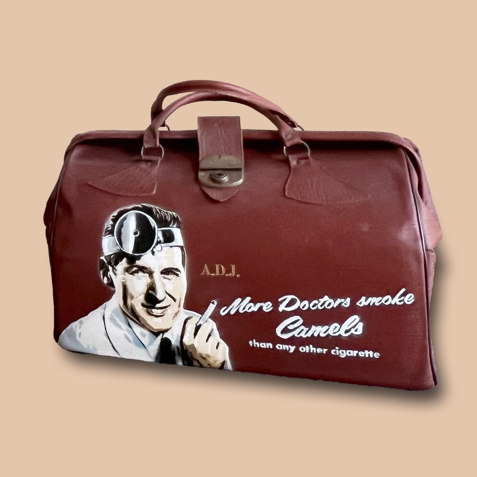 This old doctors bag was part of a an auction lot I bought containing various old suitcases. I didn't really want this one, but I came up with this idea. I always shake my head in amazement that not too long ago, many doctor's advocated smoking cigarettes!
