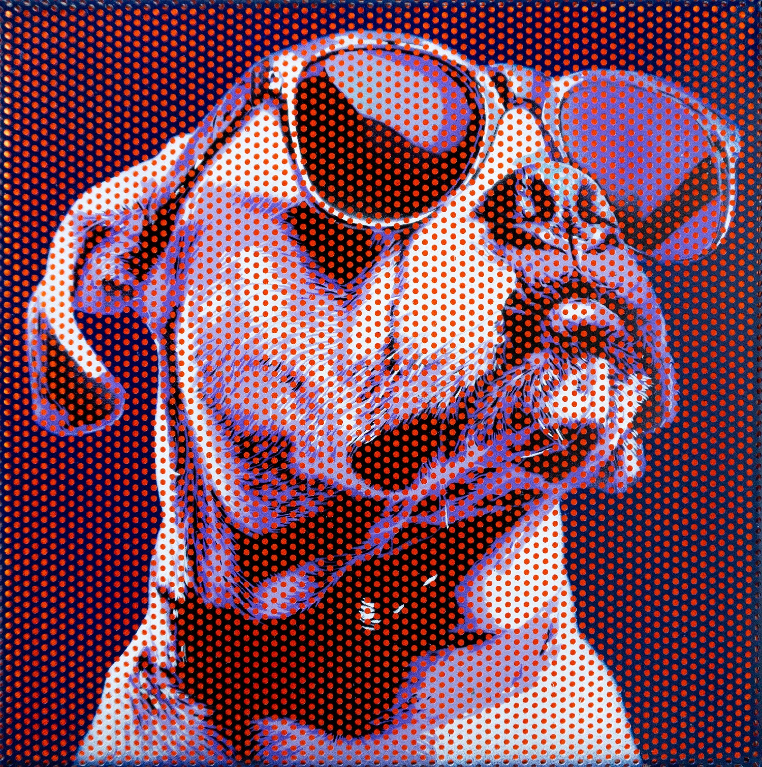 This new series uses my usual stencil technique, but this time the subjects are not inspired by memory or place - but are portraits created using AI - faces made from code. Using perforated steel as my "canvas", suspended over fluorescent backgrounds, each image plays with light and perception - asking: where does human identity end, and digital mimicry begin?