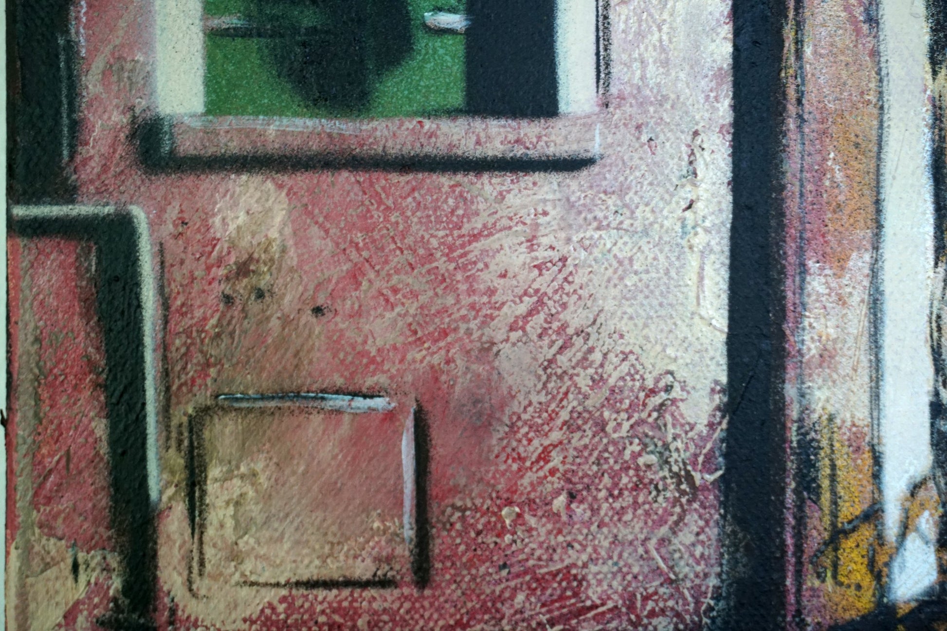 Acrylic & aerosol on canvas, 50 x 50cm, and is ready to hang.