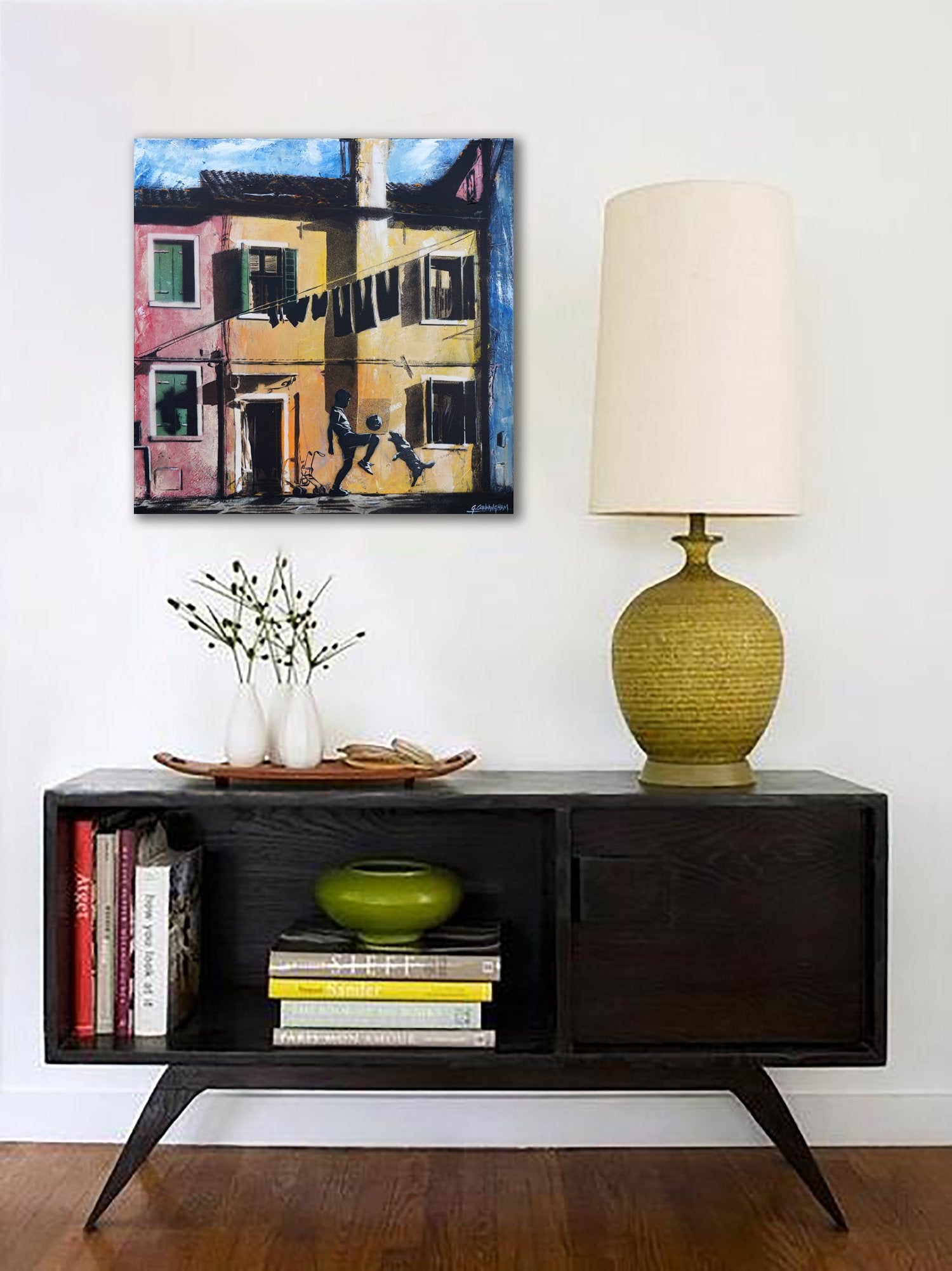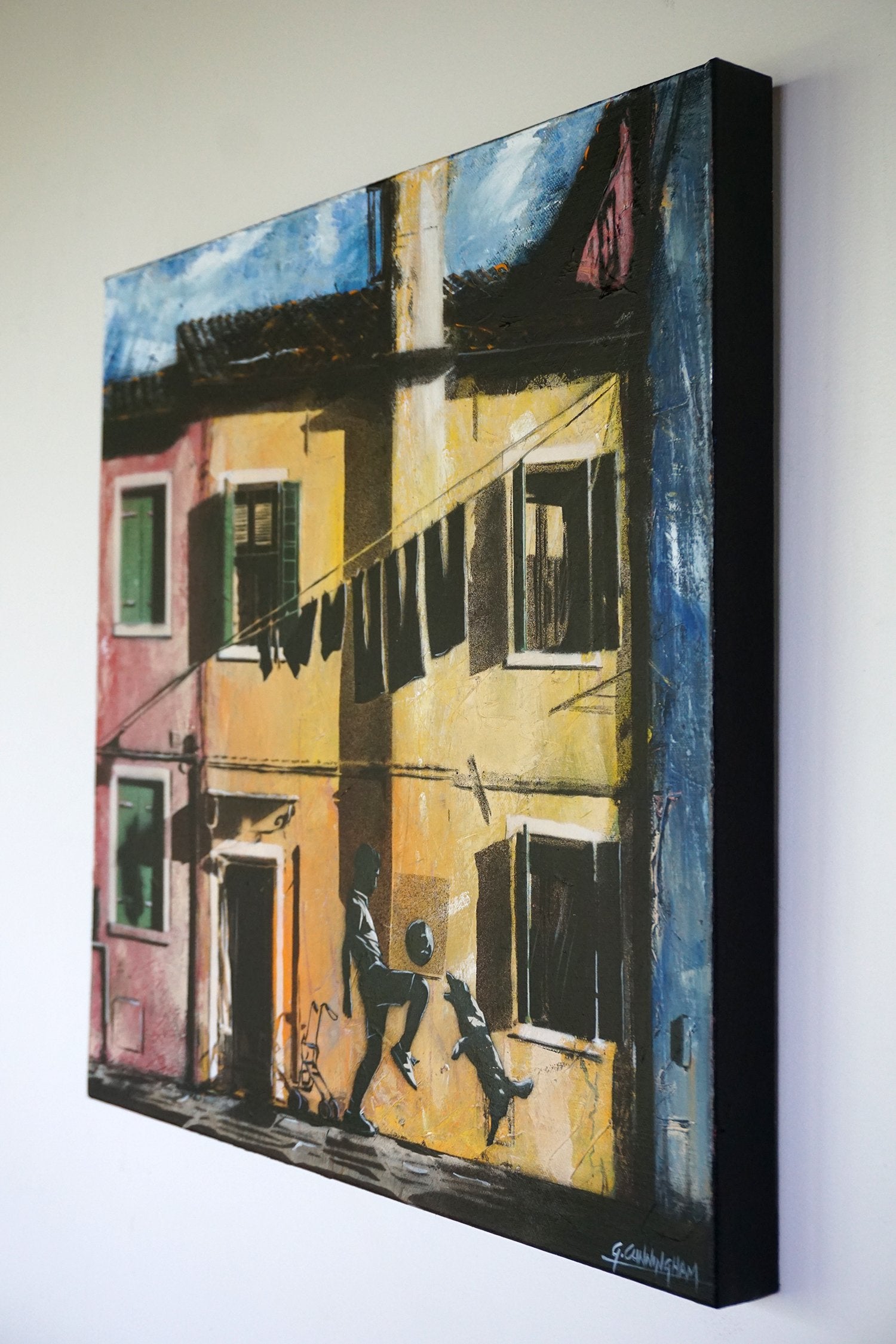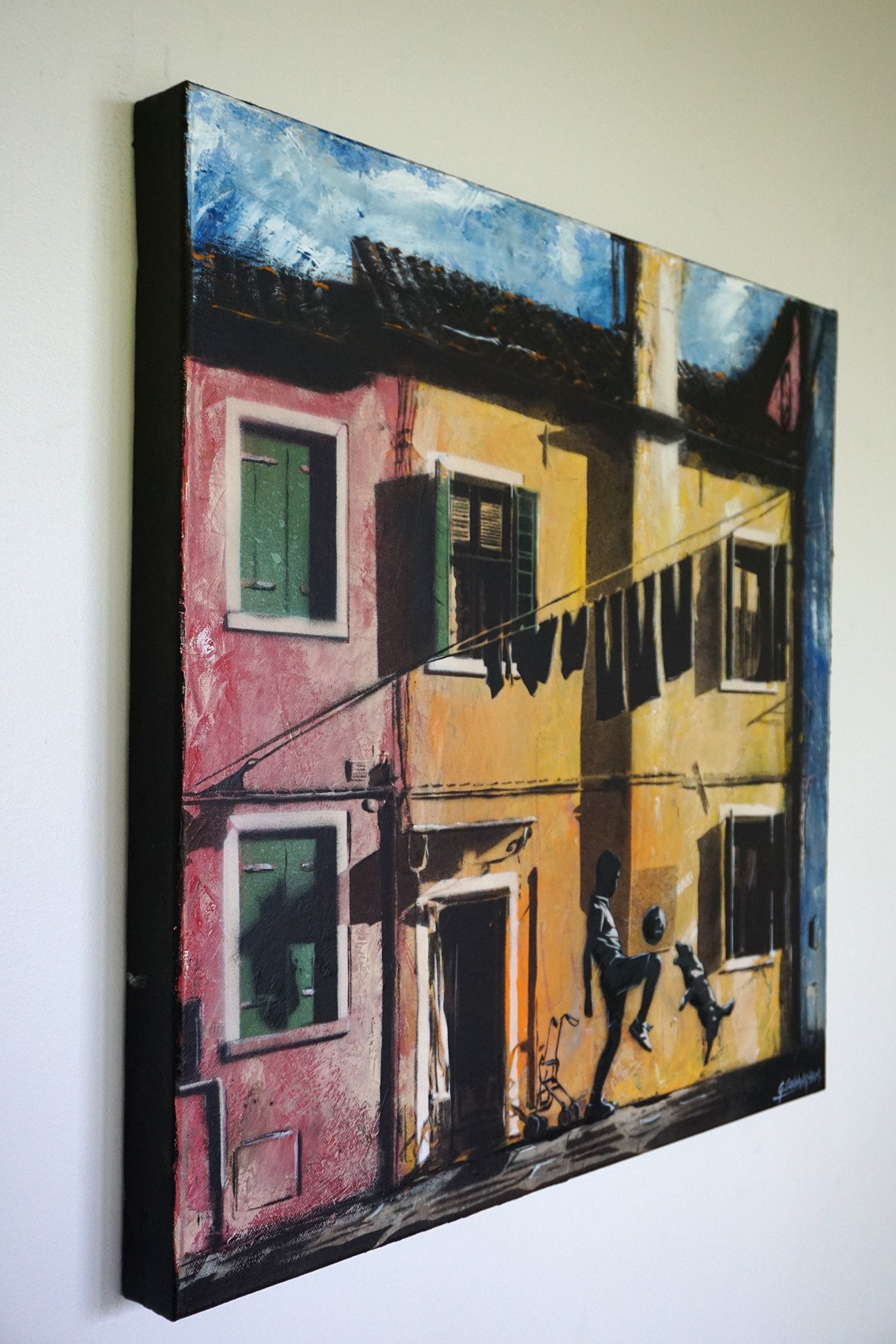 As a boy, I used to kick my footy around the backyard religiously, dreaming of one day playing professionally. When I was travelling in Europe, I constantly saw kids doing the same thing wherever they could - in this case it was late evening in the cobbled streets of Burano in Italy. A boy and his dog dreaming of bigger things...