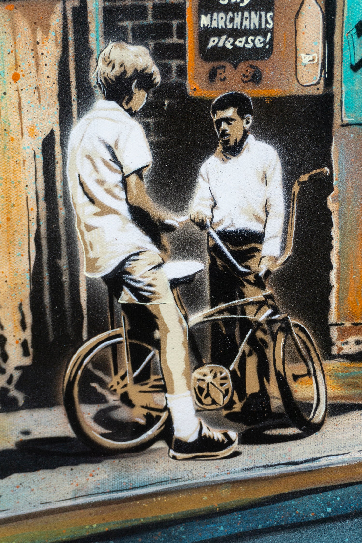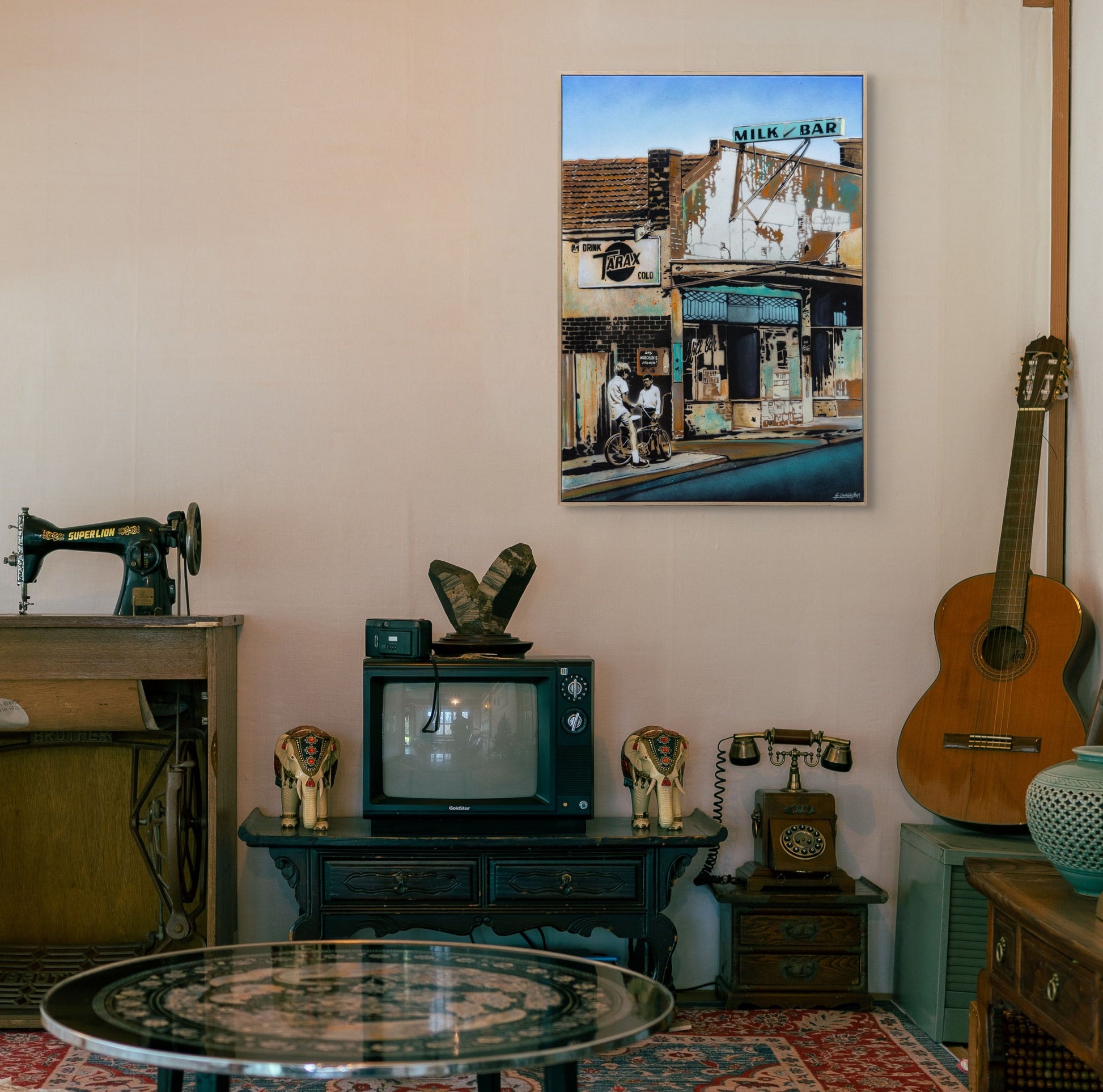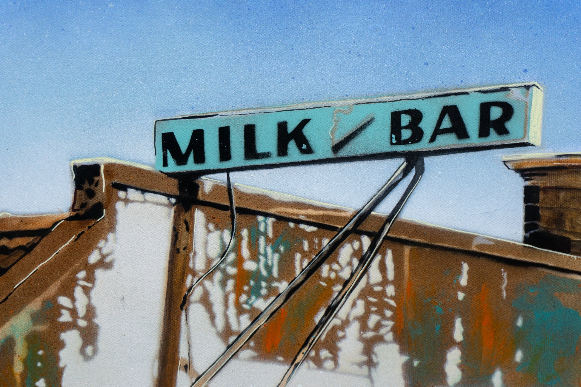 I'm a sucker for nostalgic images of milk bars and dragster push bikes- maybe it says a lot about my misspent youth! This small stencil painting is a perfect reminder of simpler days, when 20 cents worth of mixed lollies actually got you something!