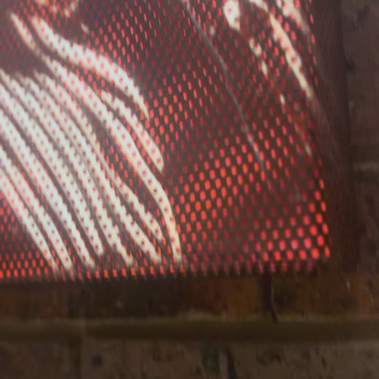 * The perforated steel shifts the colour wildly with light, creating a bold, ever-changing display. Hang it in bright light to unleash its full impact. Photos don’t do it justice—watch the videos to see its daring style come alive in your space.
