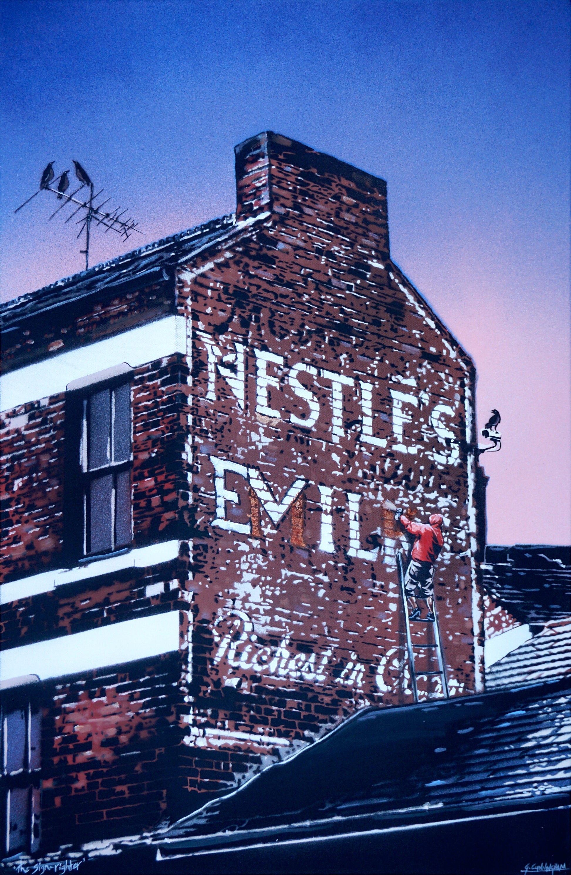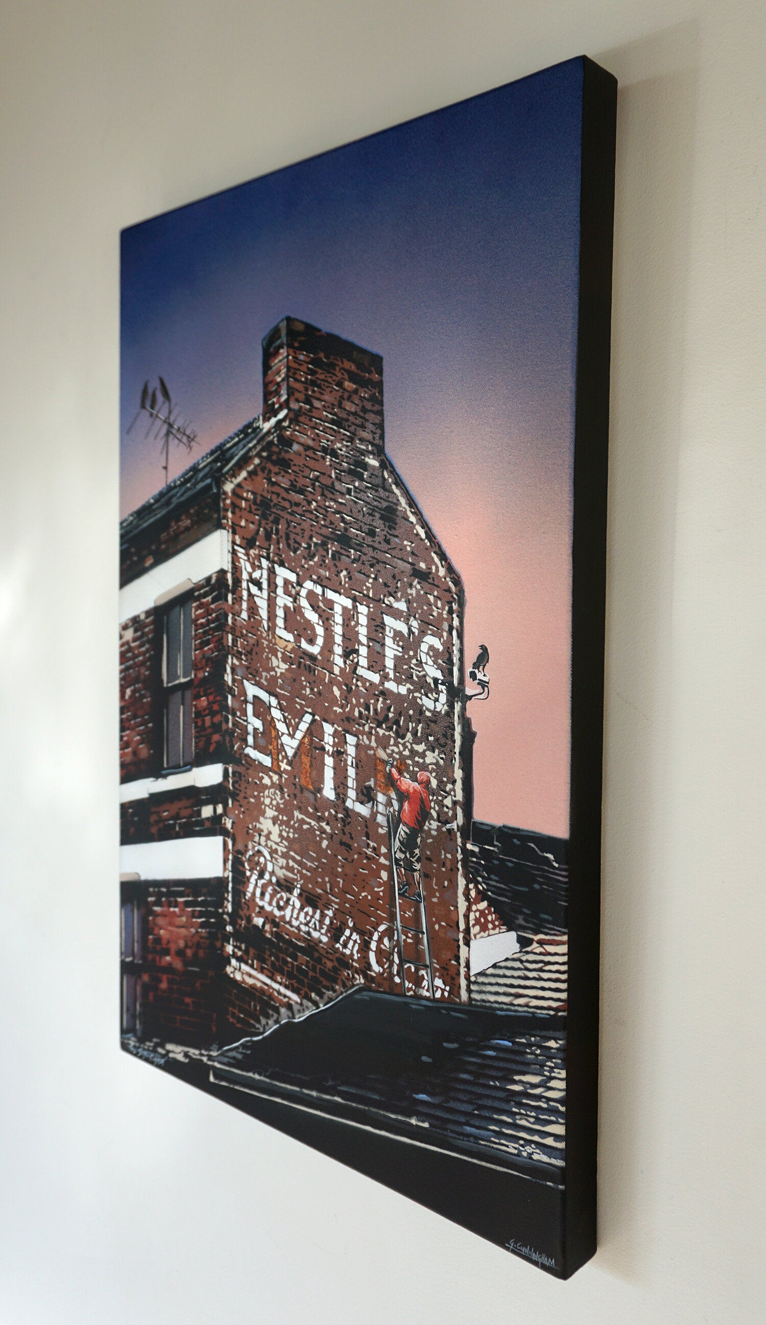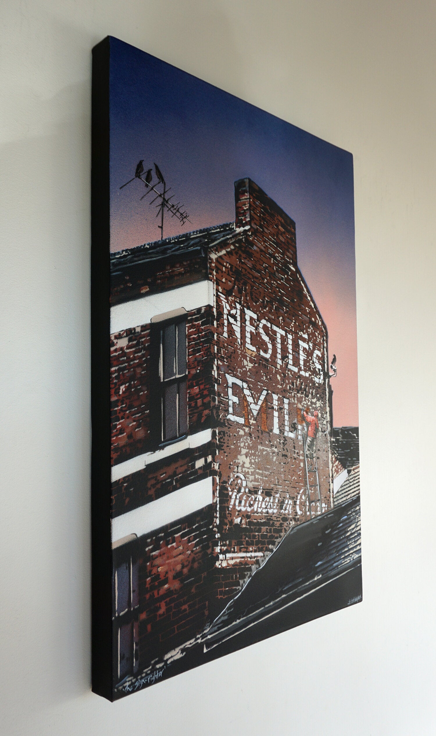 Hand cut stencil, aerosol & acrylic artist quality canvases. 51 x 76cm